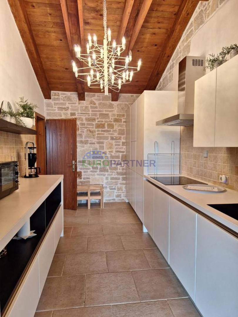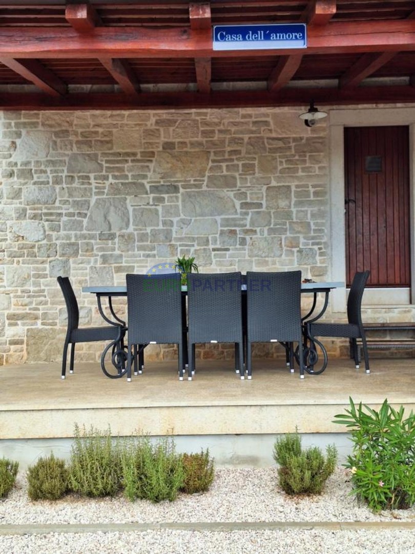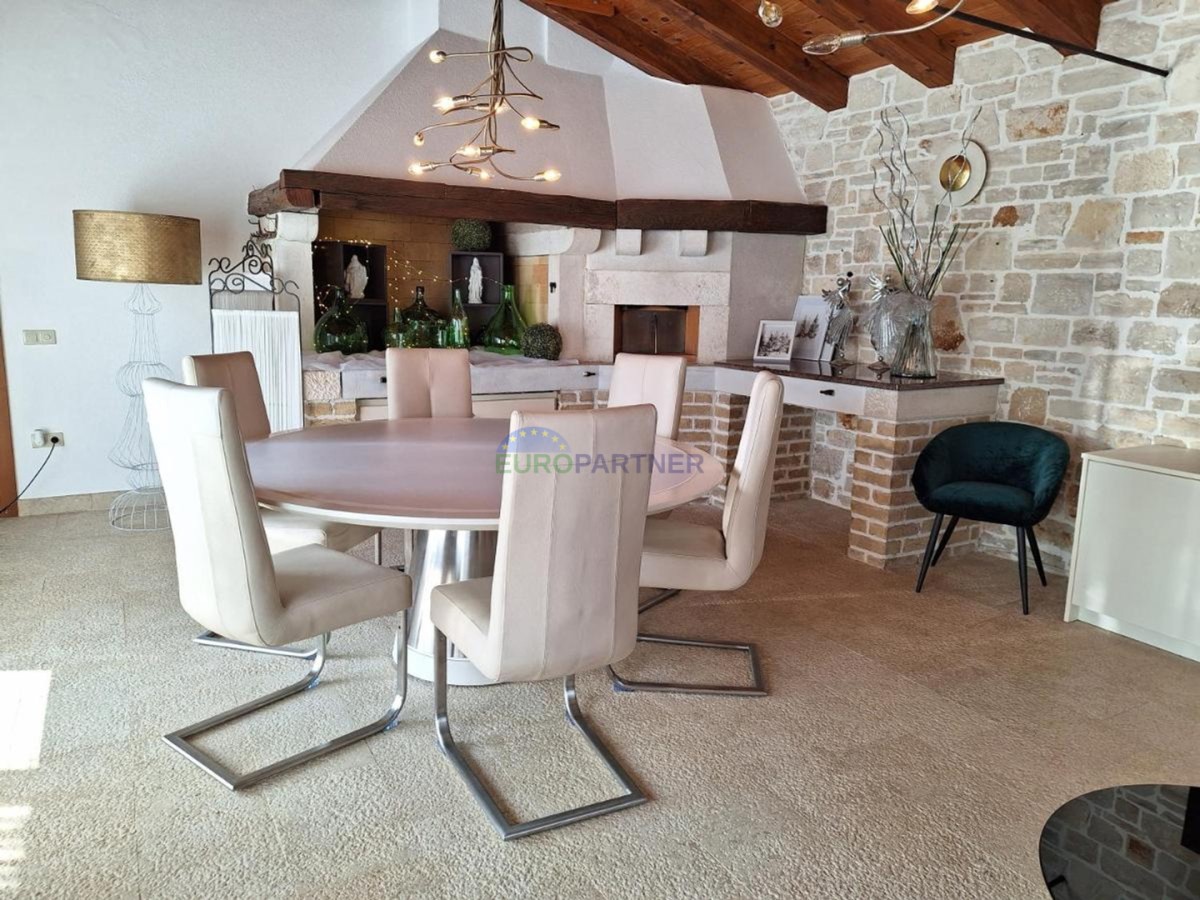 In the vicinity of the beautiful town of Poreč, this impressive detached house is located, spreading over 175 m². The house, which has been recently renovated, offers a perfect balance between traditional charm and modern comfort, ideal for anyone seeking a peaceful home close to nature.