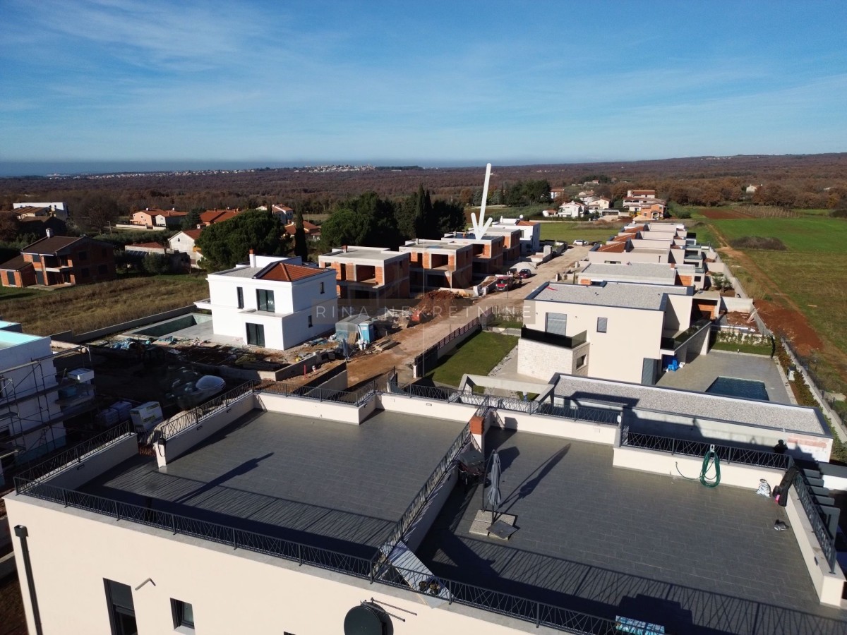 In a quiet and pleasant residential area near Poreč, surrounded by greenery and modern new-build homes, this attractive modern two-storey house under construction is located. The property is designed as a high-quality long-term family home as well as a secure investment with excellent potential for rental or permanent living.