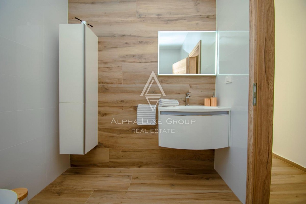 The property includes private parking for four vehicles and is fully secured with an alarm system and surveillance cameras. All rooms are air-conditioned, and every bathroom is equipped with electric underfloor heating. The villa’s high-quality materials, elegant design and premium amenities create a refined and comfortable environment for year-round use or luxury holiday rental.