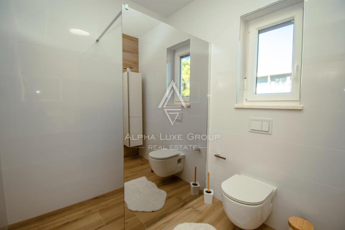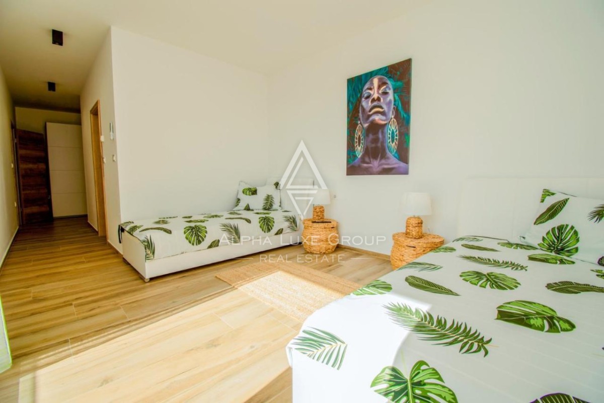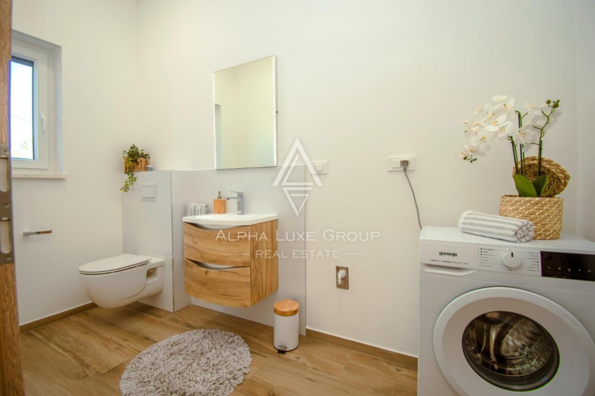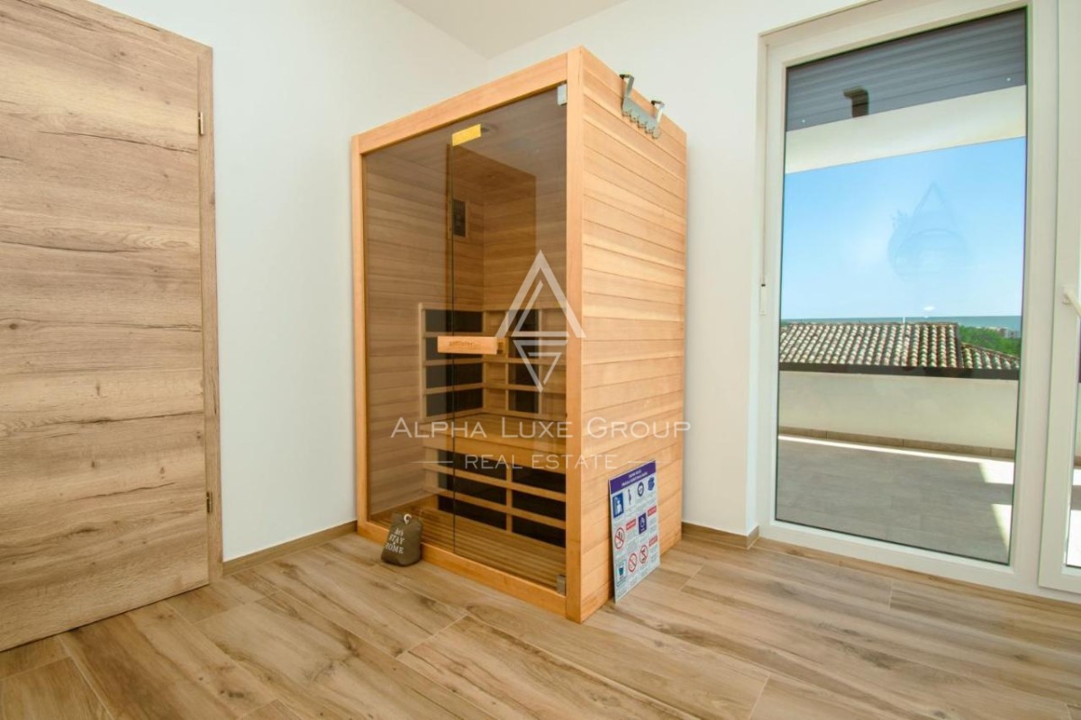 Just 200 meters from the shoreline, this elegant 195 m² villa offers a refined blend of modern architecture, luxurious comfort and beautiful sea views. Set on a spacious 766 m² plot in a quiet part of Pomer, the property provides exceptional privacy together with premium outdoor amenities including a private pool, wellness area and large terraces designed for relaxation.
