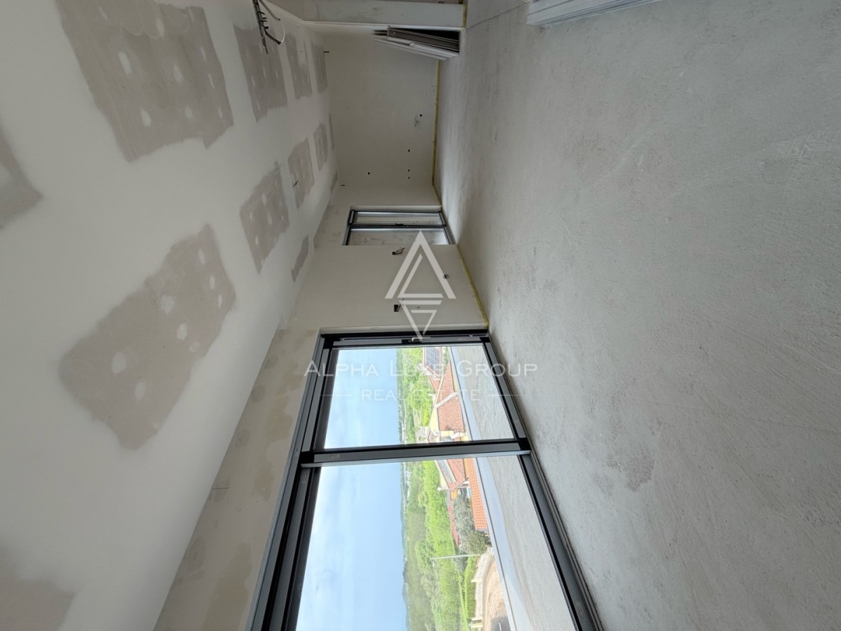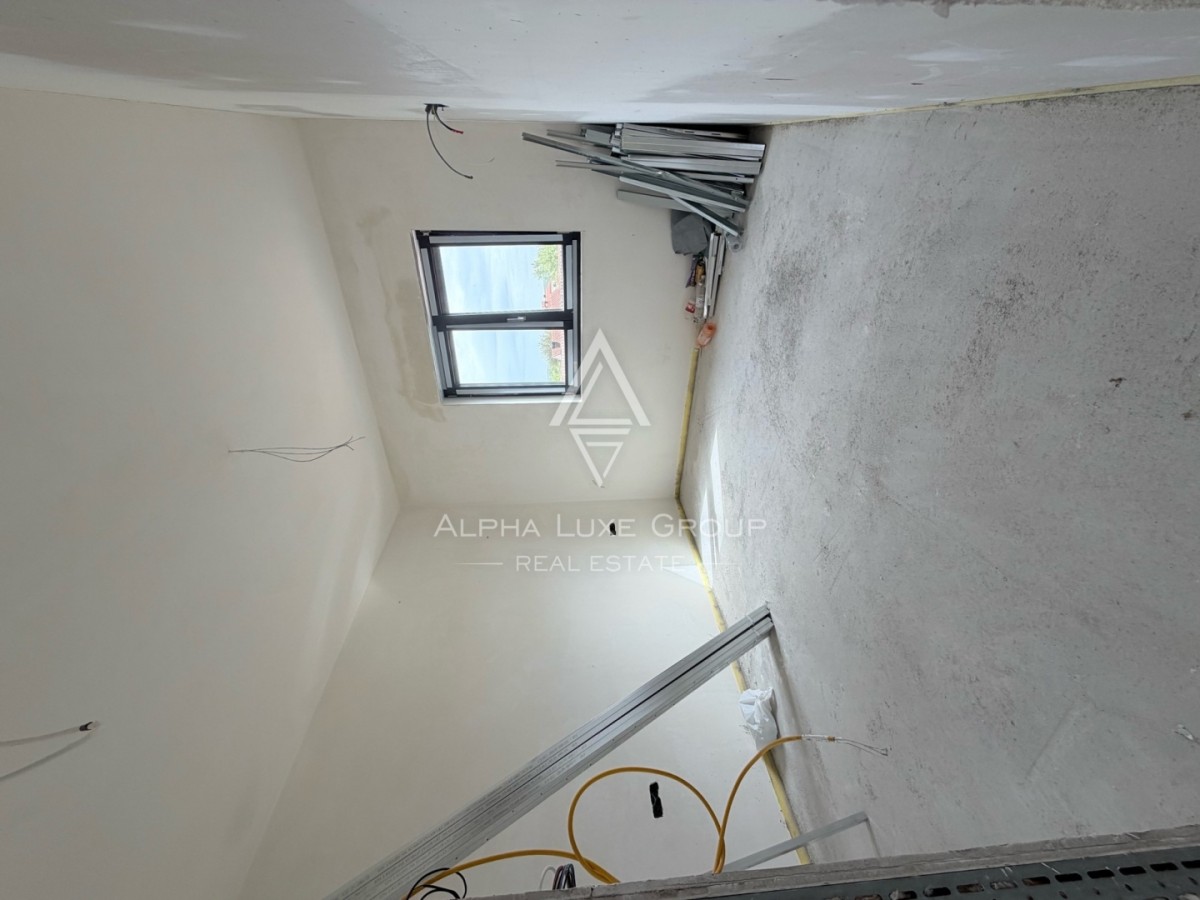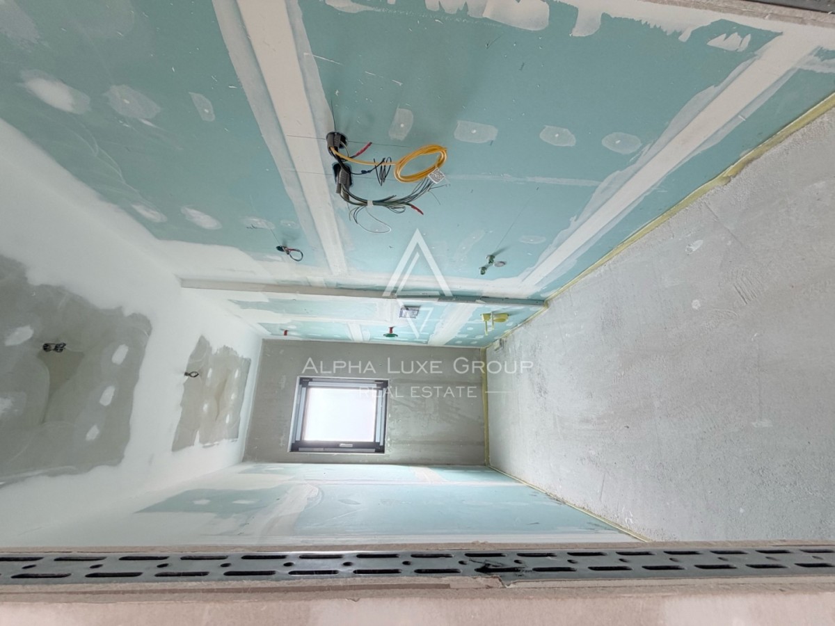 The apartment has been constructed to high standards, with a strong focus on quality materials and long-term durability. It features modern ceramic flooring throughout, underfloor heating in all rooms with individual thermostats for precise temperature control, and air conditioning units in both bedrooms and the living room, ensuring comfort throughout all seasons.