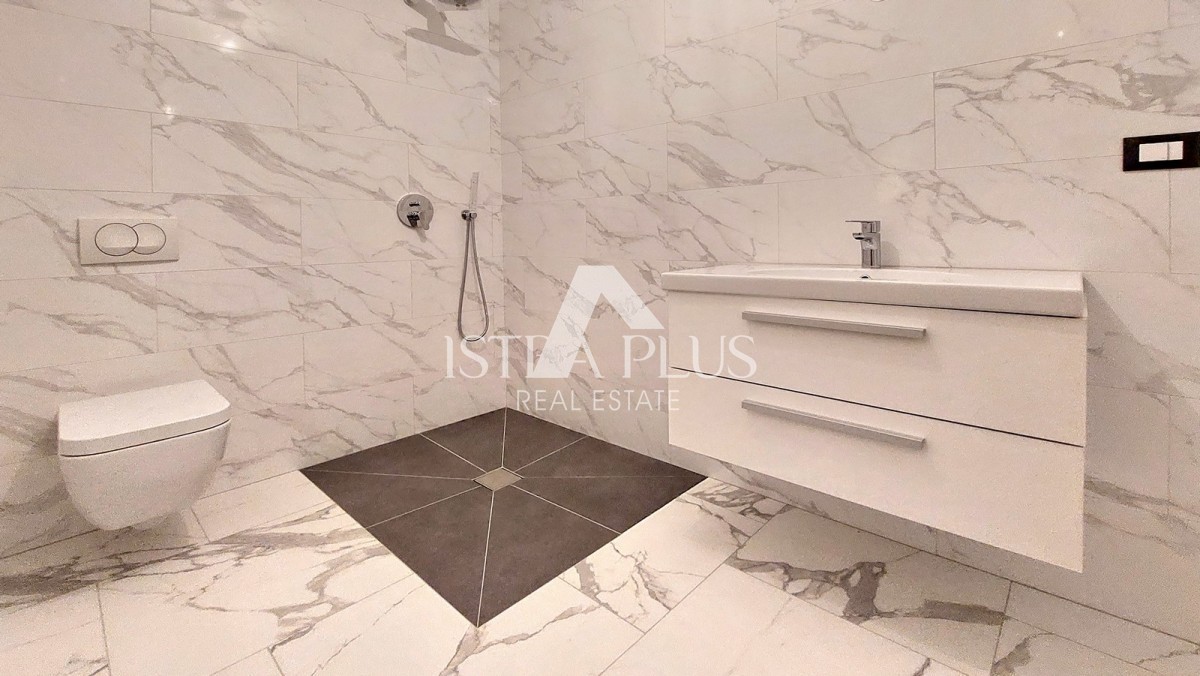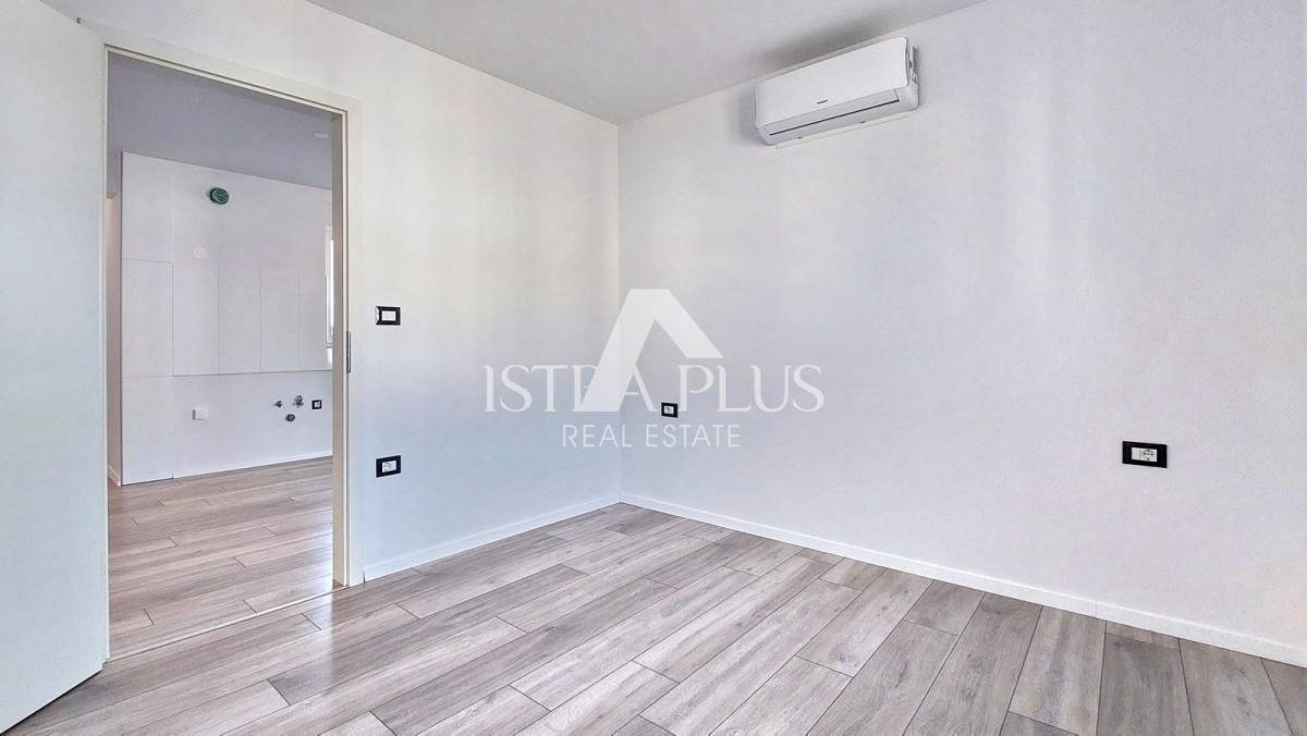 A new apartment of 65 m² for sale in the vicinity of Poreč, consists of an entrance hall, living room, covered terrace, kitchen, two bedrooms and a bathroom. The apartment has PVC joinery with 3 IZO glasses and mosquito nets, air conditioning in all rooms, underfloor heating in the bathroom and 2 parking spaces in front of the building. The apartment is located on the second floor, approx. 8 km from the sea and approx. 7 km from the city center.