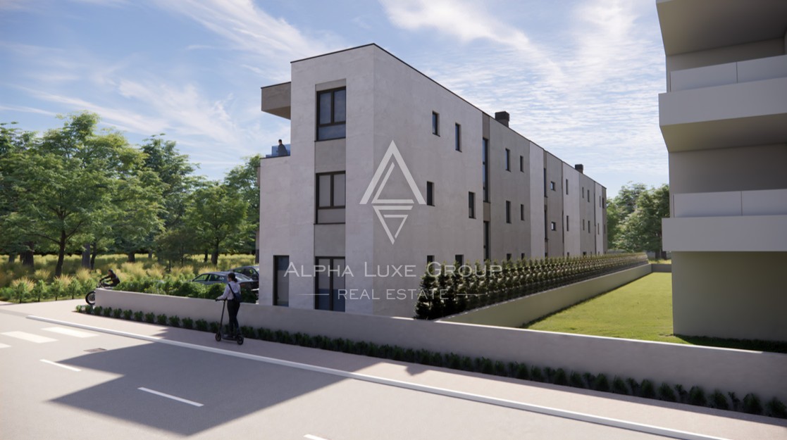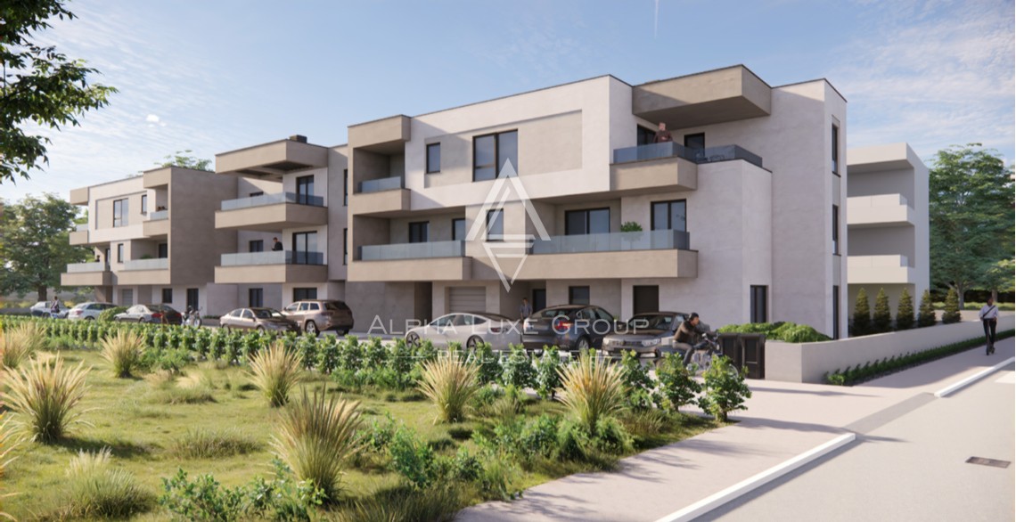 A modern ground floor apartment is offered for sale in a newly developed residential complex located in a quiet and well-connected area of Pula. The project includes three buildings arranged in a row, each consisting of four well-designed residential units, ensuring privacy and comfortable living.