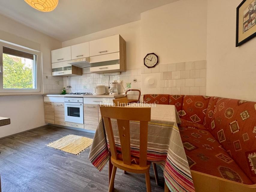 A functional apartment is for sale in an excellent location in Rabac, with a sea view.