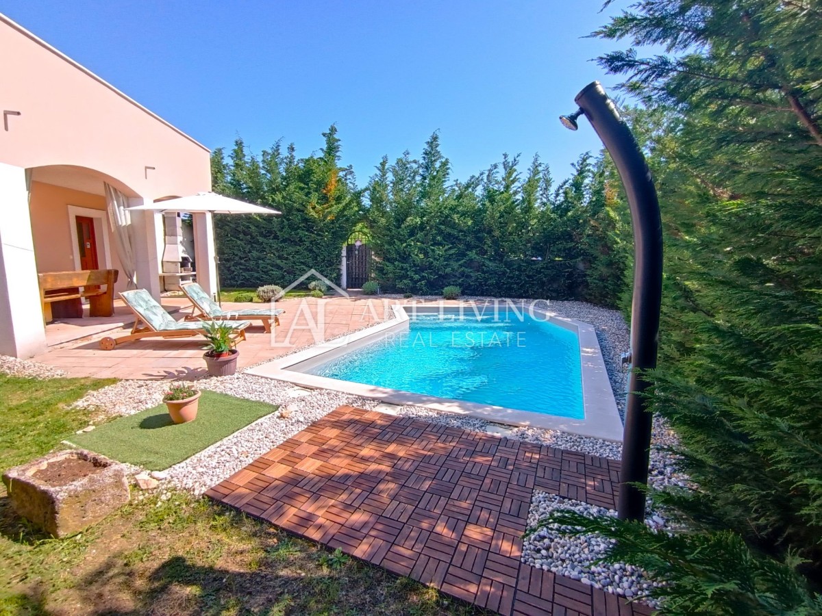 A beautiful house with a swimming pool, in the Istrian style, is for sale, located in a quiet location and surrounded by nature and greenery. It is 6 km from Svetvinčent, 11 km from Vodnjan and 19 km from the sea.