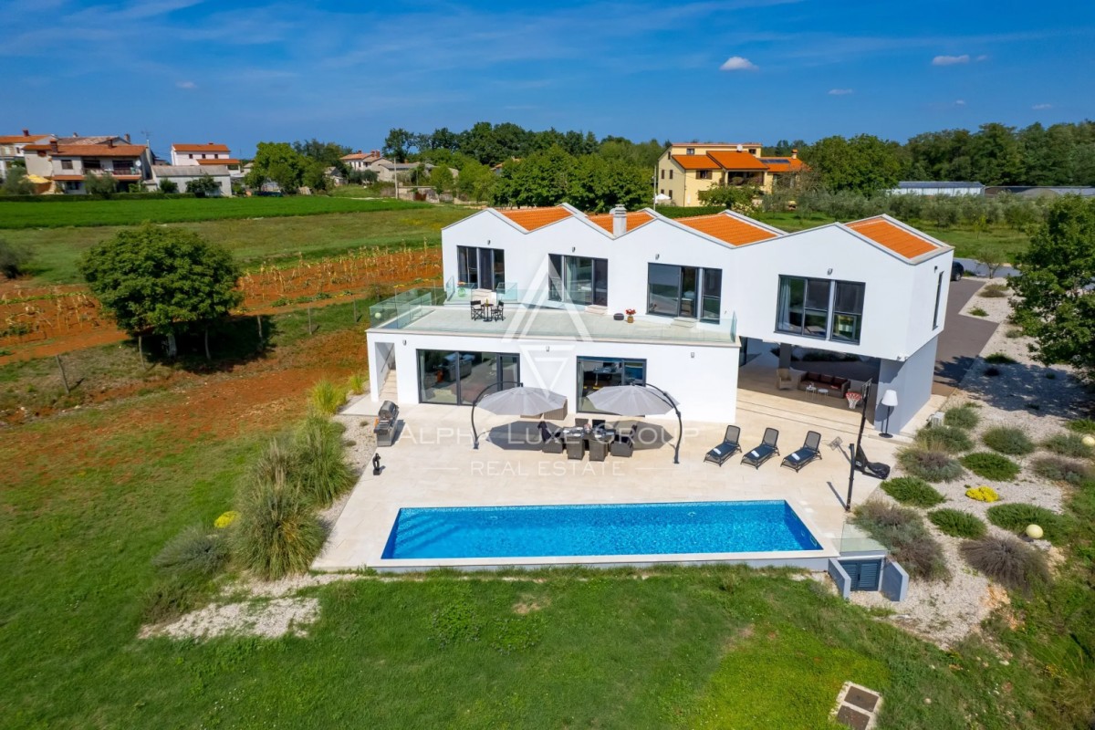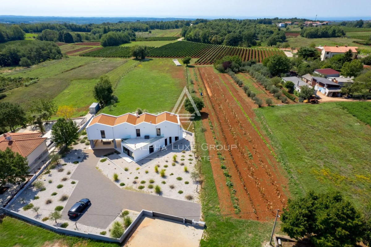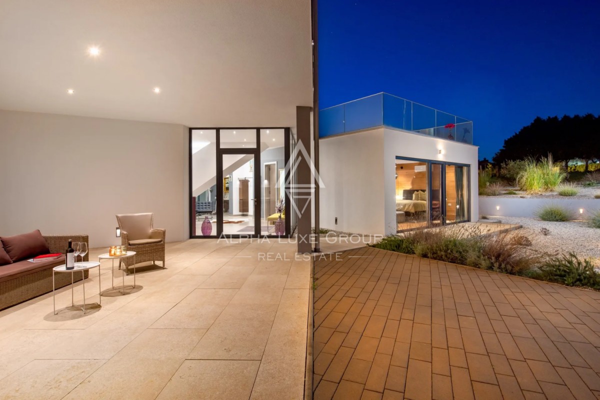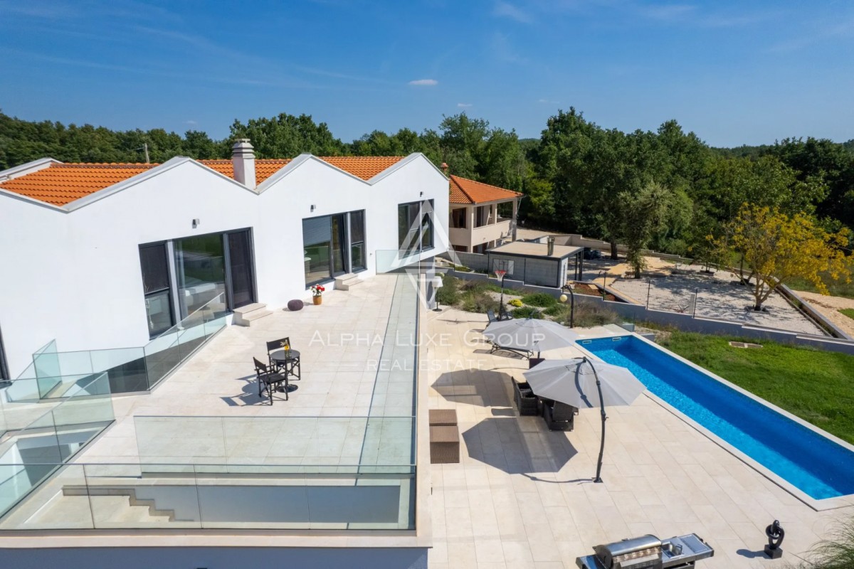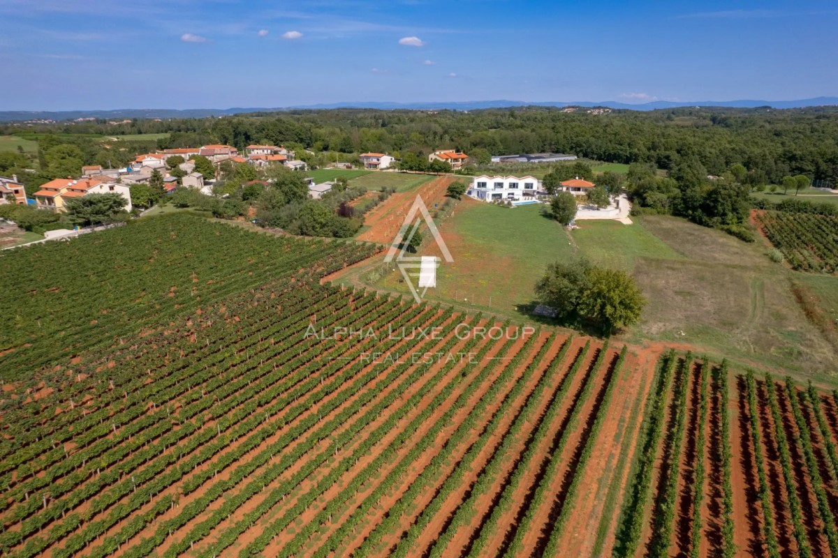 Discover an exceptional villa for sale in Višnjan, positioned on the tranquil edge of a charming Istrian village. Surrounded by greenery and full privacy, this contemporary residence blends modern architecture with refined comfort on a spacious 6,271 m² plot. The villa includes 454 m² of indoor living space and an additional 119.47 m² of terraces designed for premium outdoor living.
