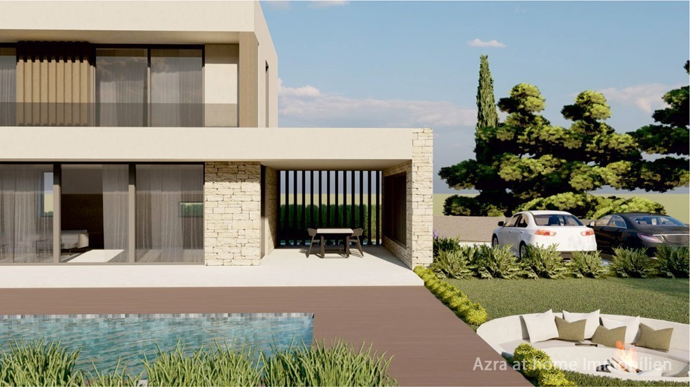 DVORI, approximately 10 km from Poreč and 8 km from the sea, 2 km from Kaštelir. Land area of 1223 m2, consisting of: Building plot in a quiet location, 860 m2, adjacent to which is 363 m2 of agricultural land. The price of the land includes a building permit with project documentation for a house with a net area of 300 m2 with a pool of 48 m2.