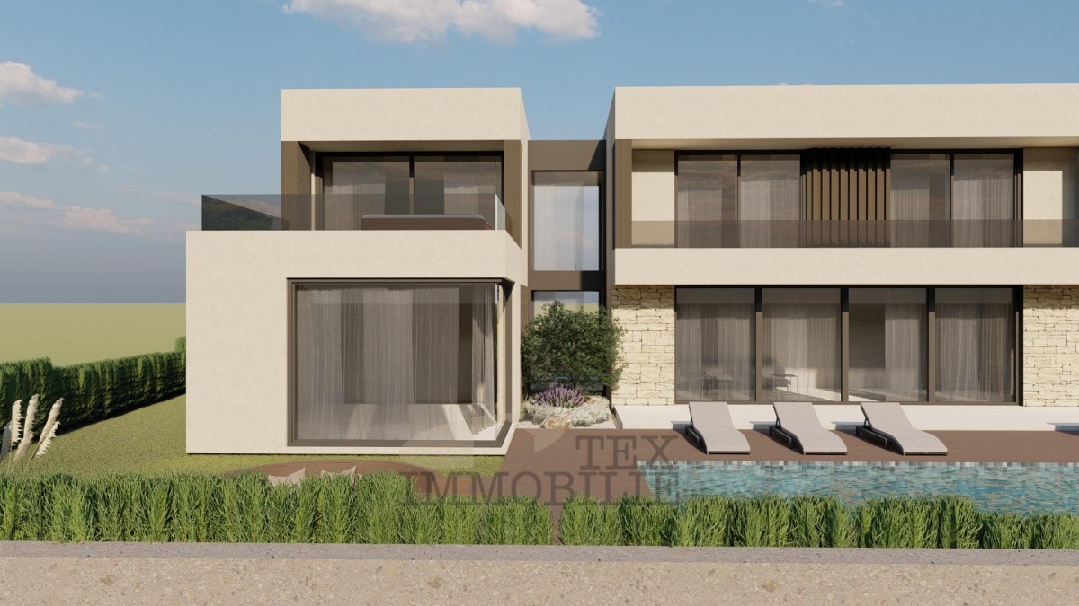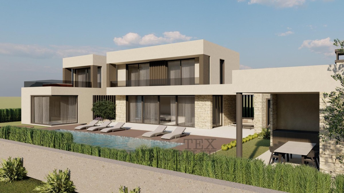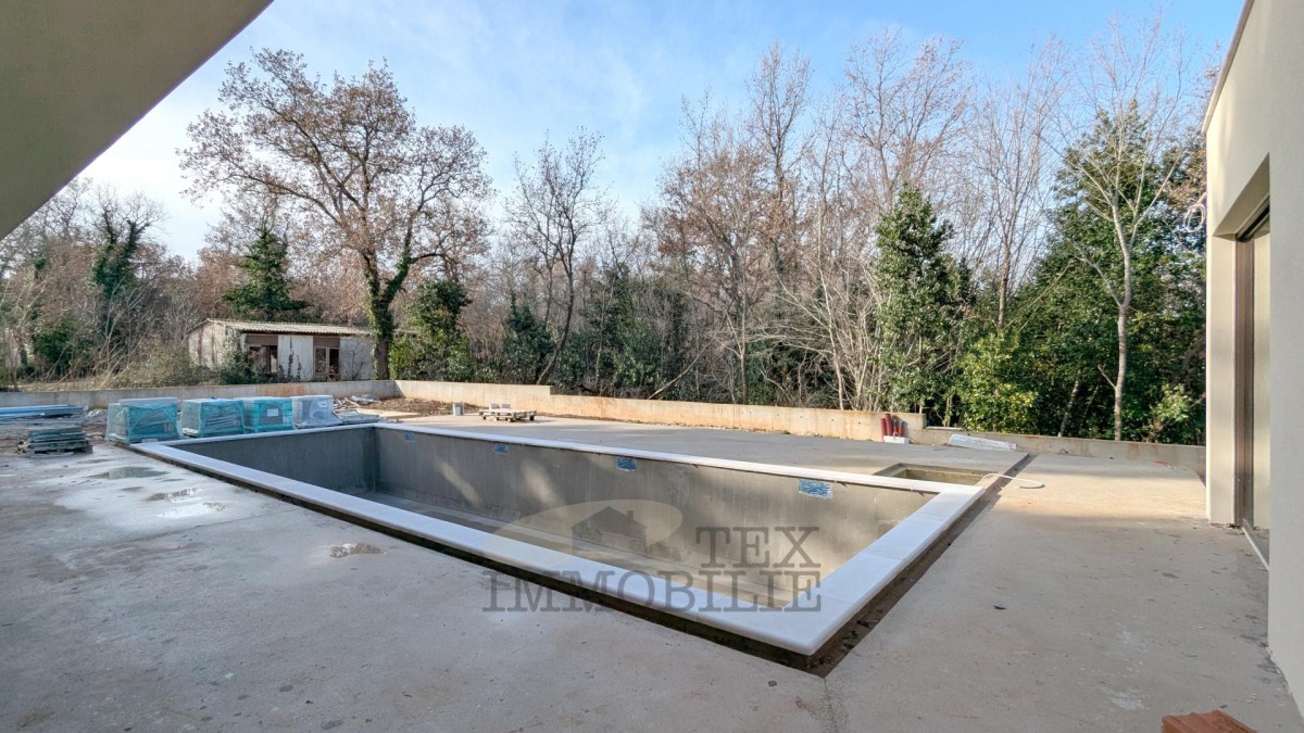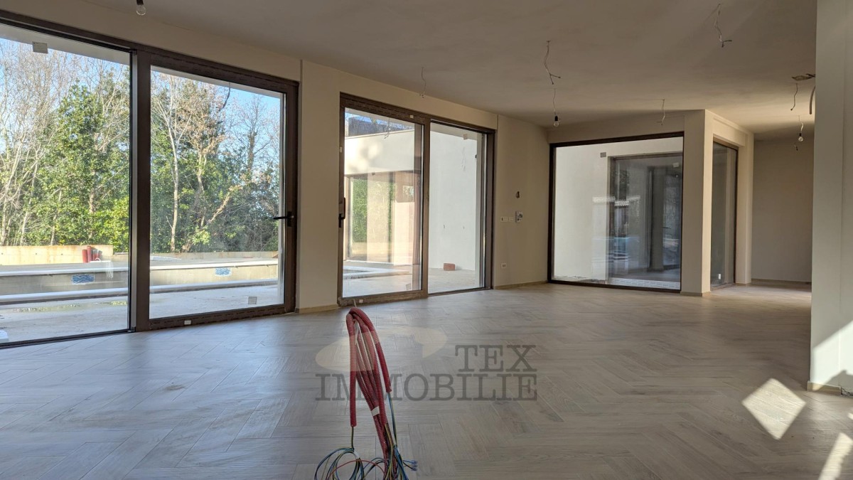 The contemporary villa currently under construction spans 205 m², offering both comfort and privacy on a 680 m² landscaped plot. Designed across two levels, the villa features a range of amenities aimed at maximizing the convenience and well-being of its future residents.