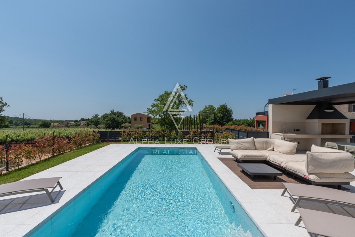 A luxury furnished villa for sale in a quiet location near Vižinada, 16 km from Poreč and the first beaches.