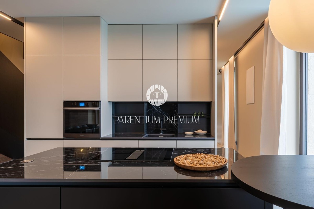 The living room features a Samsung 75’’ TV, while the kitchen is equipped with high-quality Whirlpool appliances, combining functionality and modern design. The interior is enriched with Lea Ceramiche tiles, Catalano sanitary ware, Lestur interior doors with concealed aluminium frames, and designer lighting by Flos and AY ILLUMINATE. Furniture is provided by renowned brands Alf Da Frè, Bonaldo, Doimo Salotti and Désirée, ensuring the highest standards of quality and style.