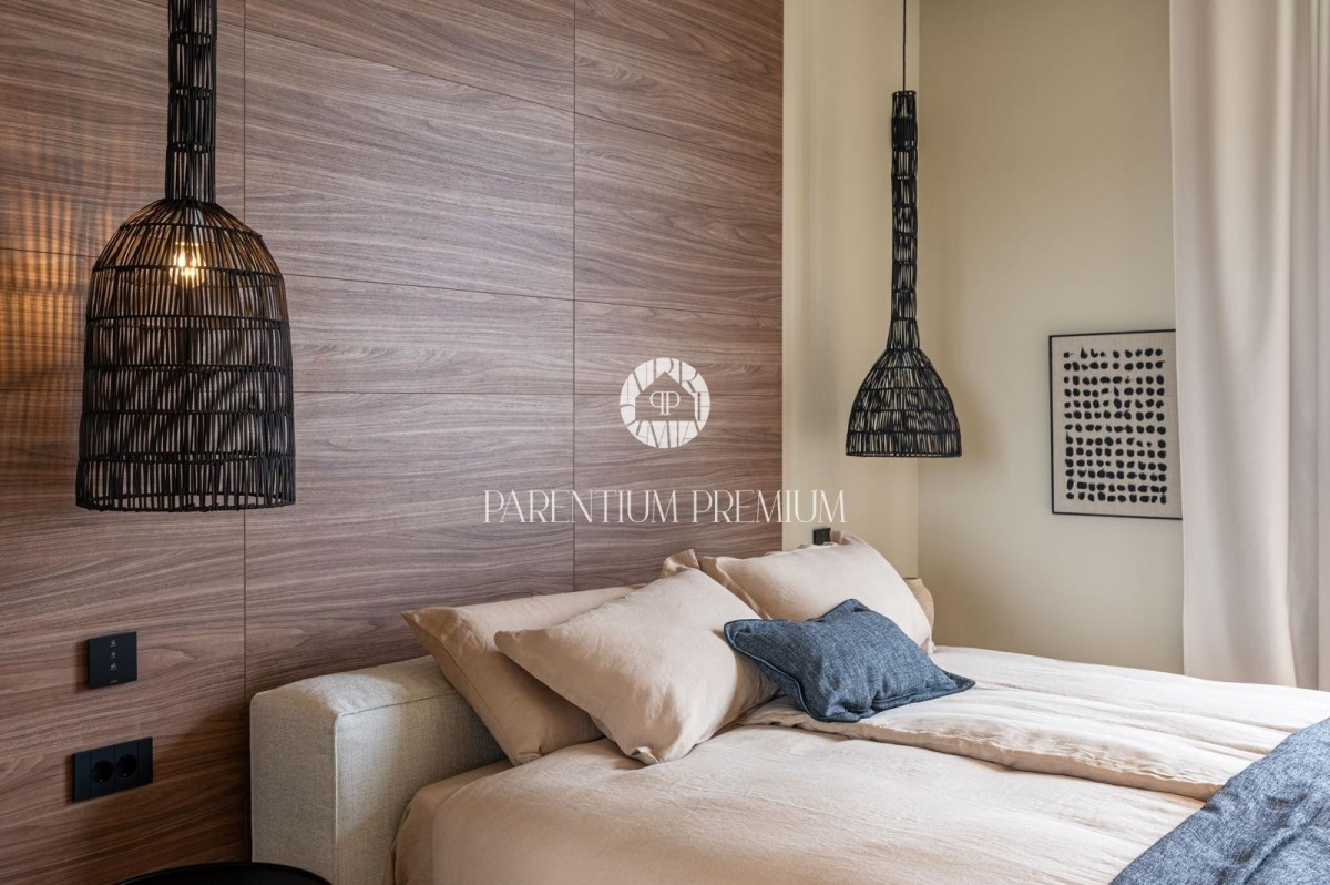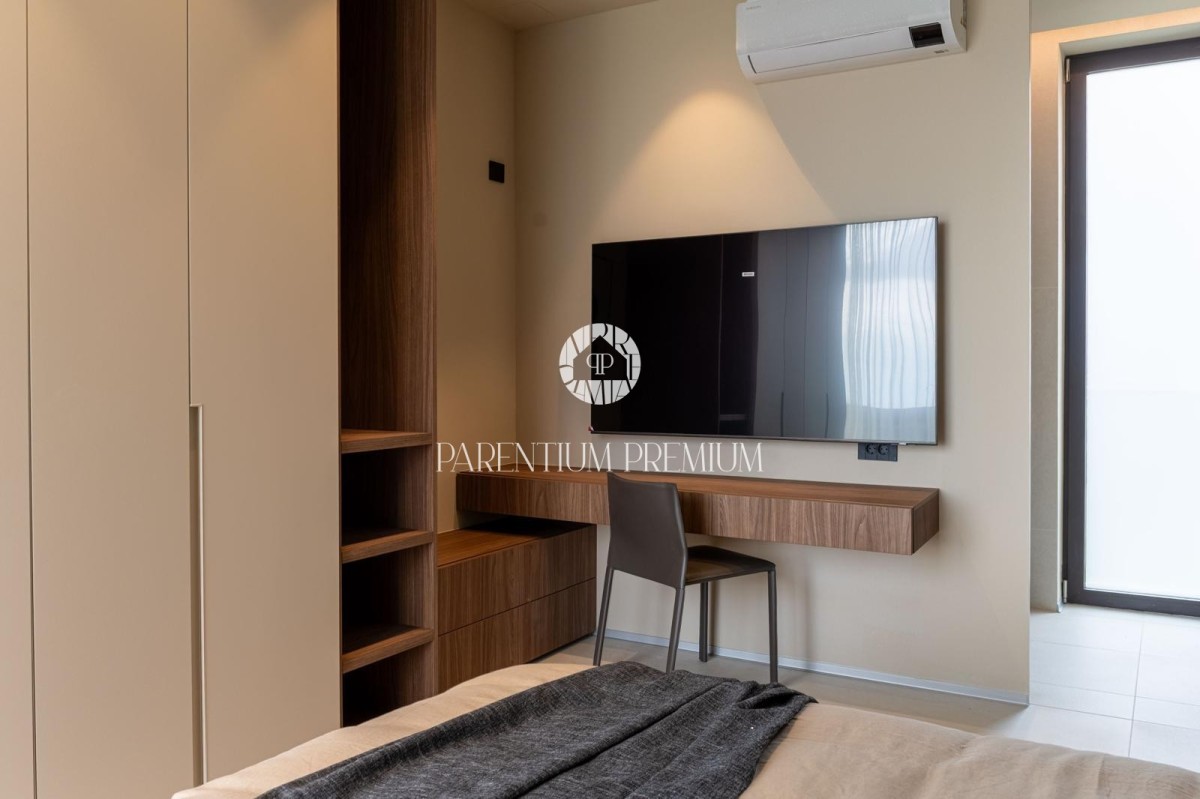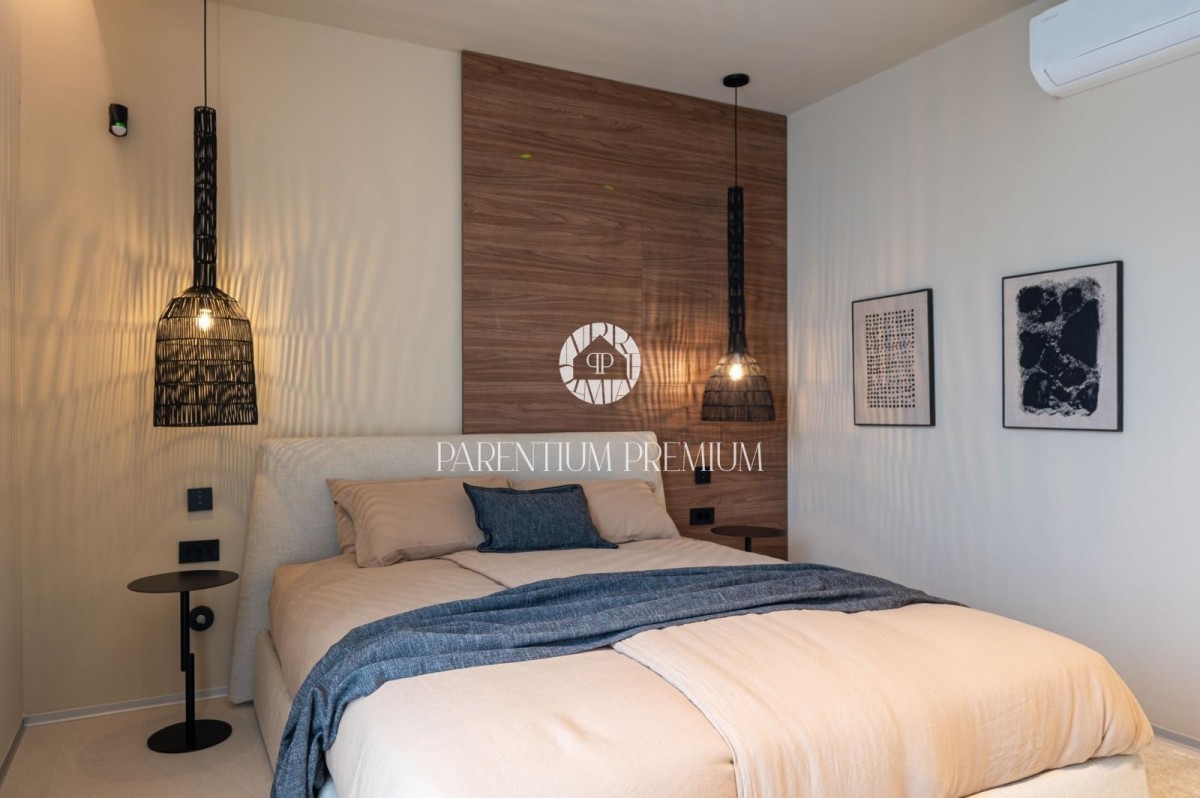 The upper floor is dedicated to three spacious bedrooms, each with its own en-suite bathroom. The bedrooms are equipped with premium Dorelan MILLENAIRE R2 mattresses and Samsung 65’’ televisions, while carefully selected designer furniture ensures a luxurious yet welcoming atmosphere. One bedroom has access to a large terrace offering breathtaking panoramic sea views.