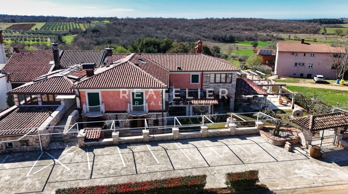 Mixed-use (residential and commercial) complex covering an area of 1350 m2 with great potential for hospitality and tourism activities, located only 2 km from the coast and 5 km from the Golf Adriatic Resort (Kempinski). The complex features a spacious 44 m2 pool surrounded by a sunny terrace with a capacity for 130 people. The interior of the building offers elegantly designed spaces, including a hall with a capacity for 110 people, ideal for business events or special occasions. The accommodation part consists of 2 rooms, 2 apartments, and 4 studio apartments furnished with high-quality materials such as solid wood and stone, ready to accommodate guests. A rarity on the market considering the excellent location and the surface area of the property.
