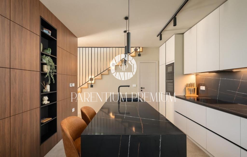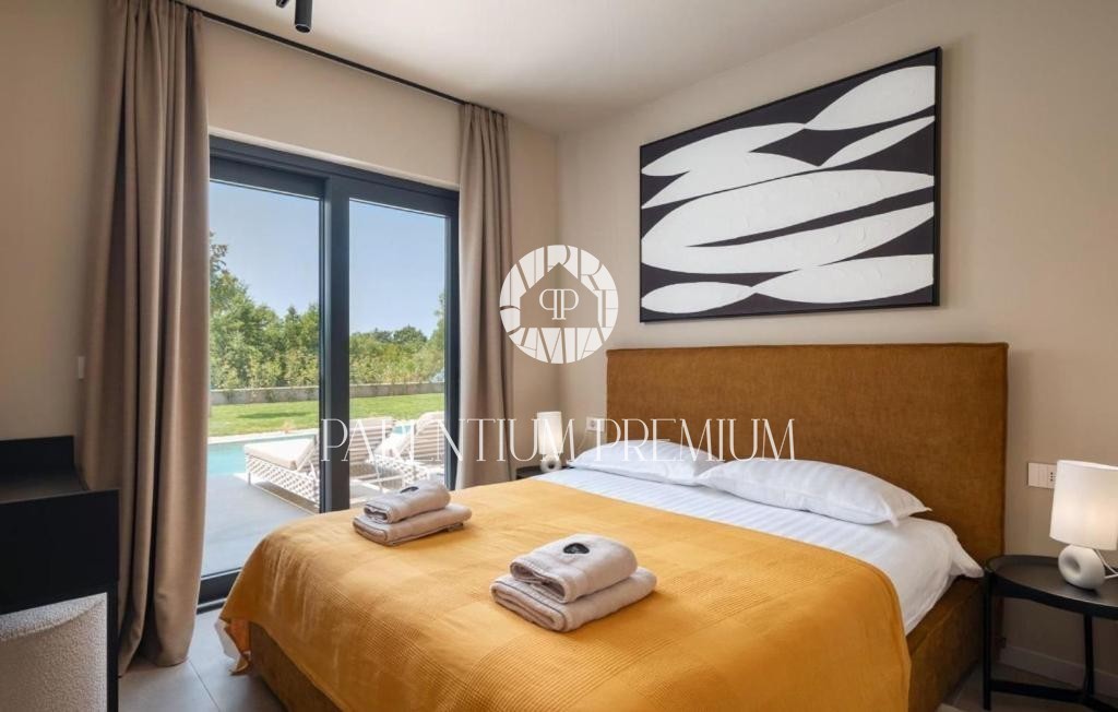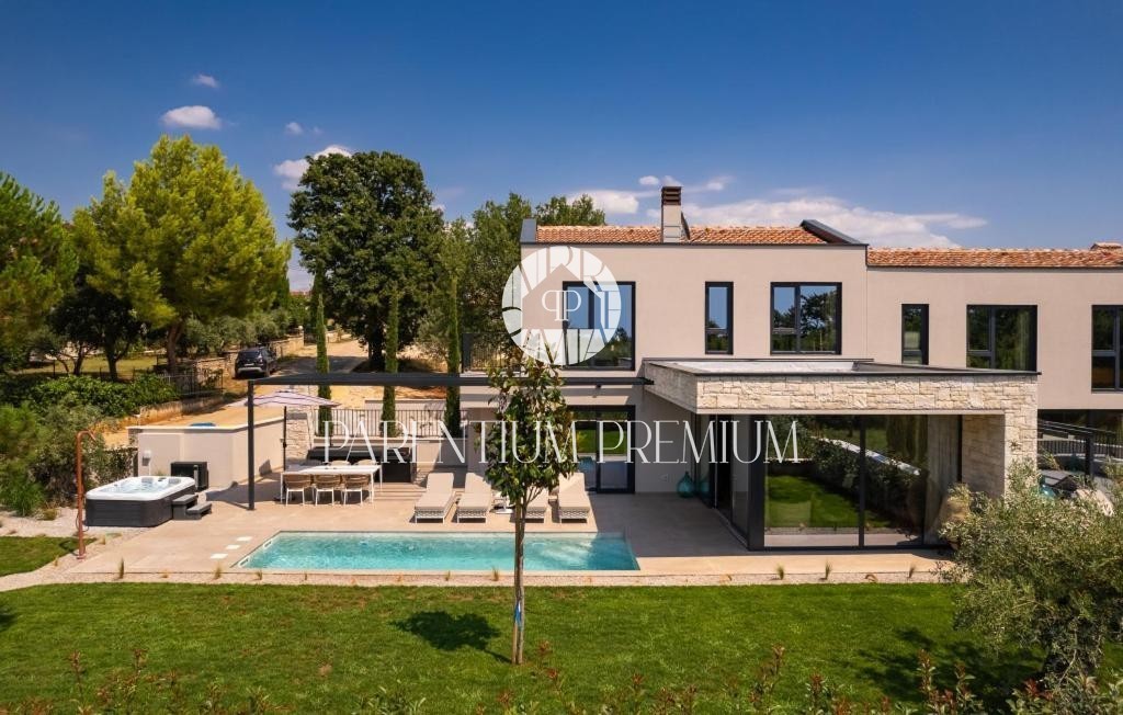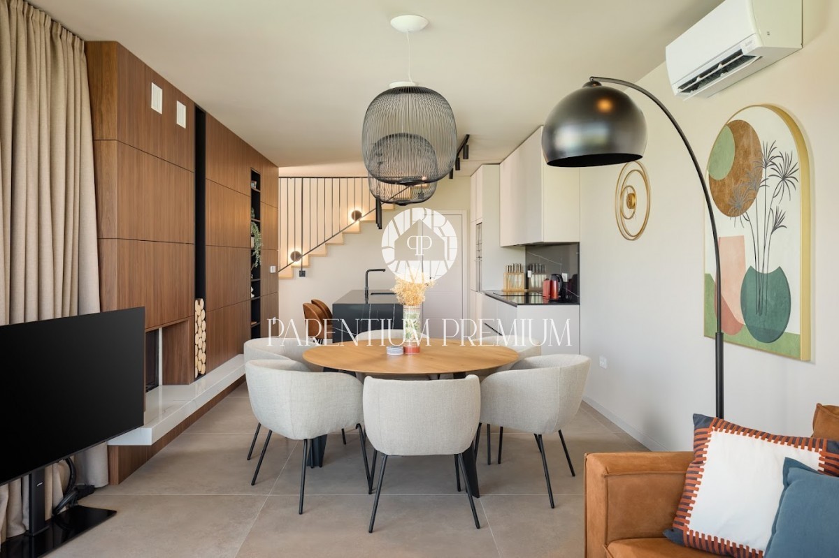An excellent semi-detached designer villa with a total area of ​​143m2 with a swimming pool and sauna is for sale, located in a beautiful location surrounded by olive groves and greenery.