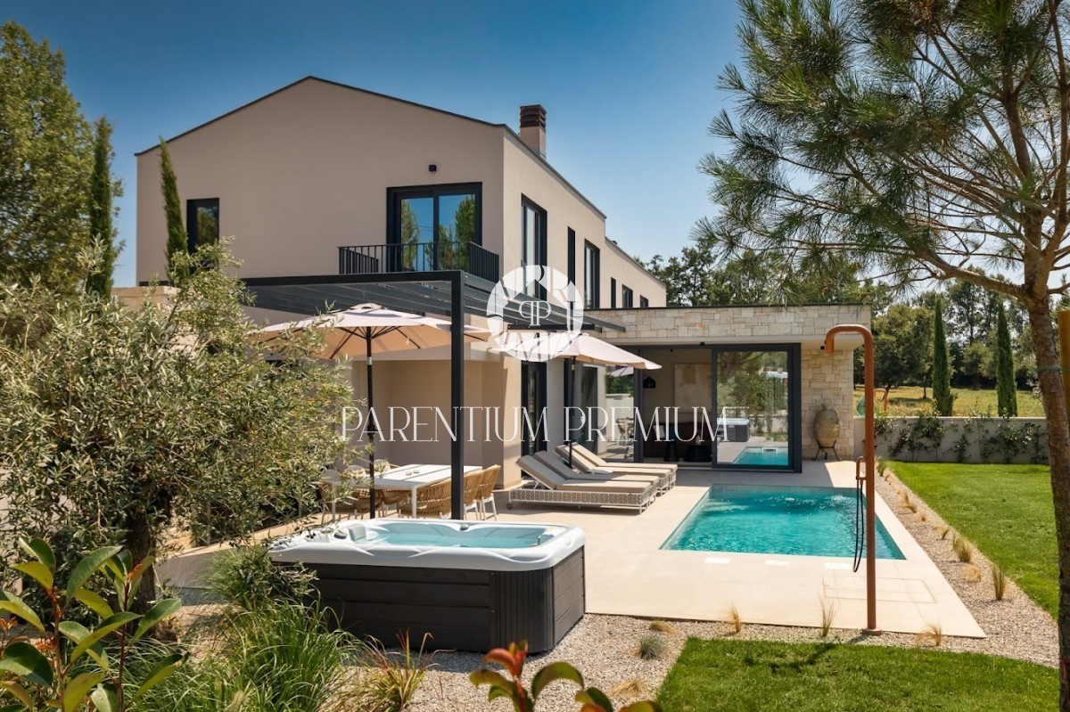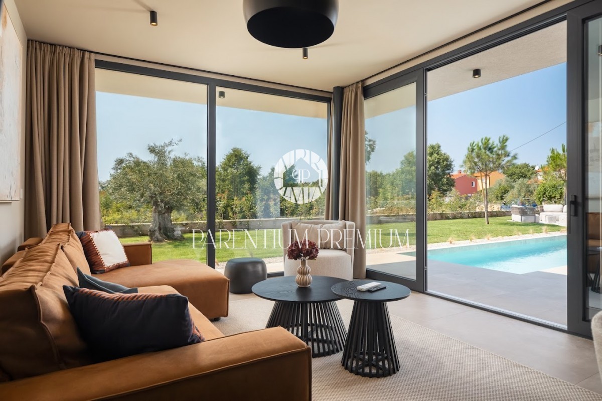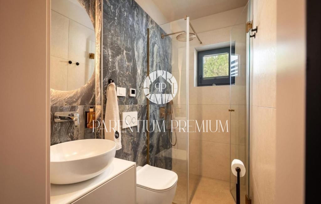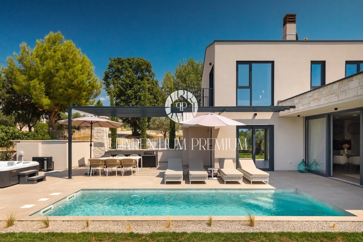 An excellent semi-detached designer villa with a total area of ​​143m2 with a swimming pool and sauna is for sale, located in a beautiful location surrounded by olive groves and greenery.