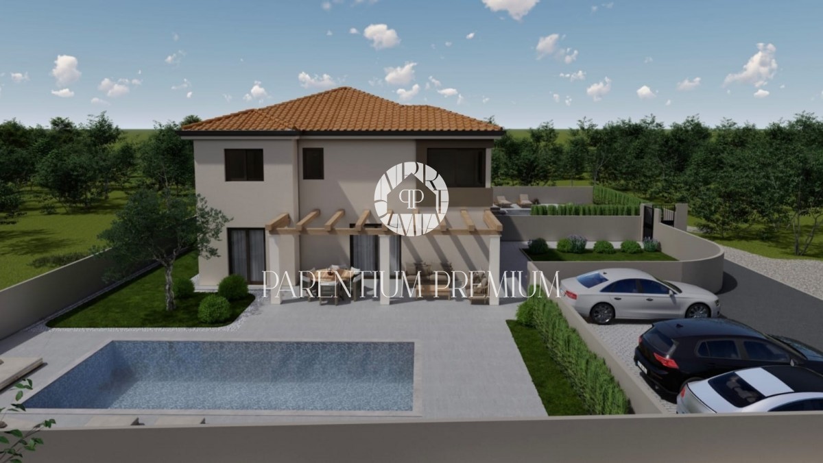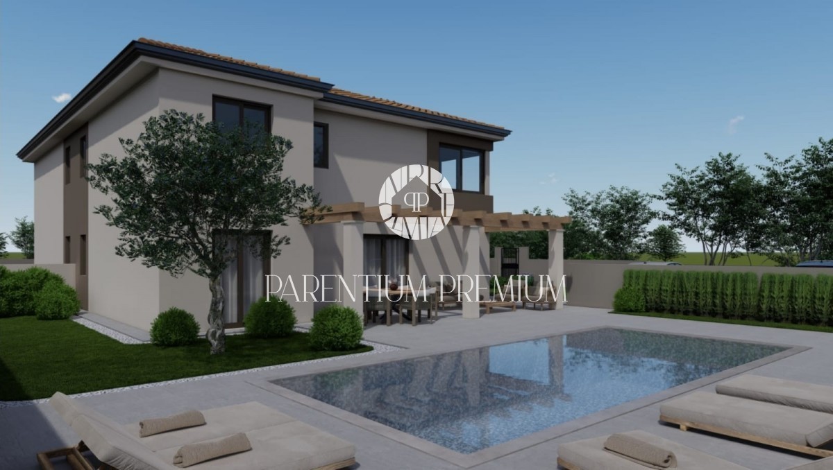A modern semi-detached house for sale in a quiet location near Poreč, 10 km from the sea.