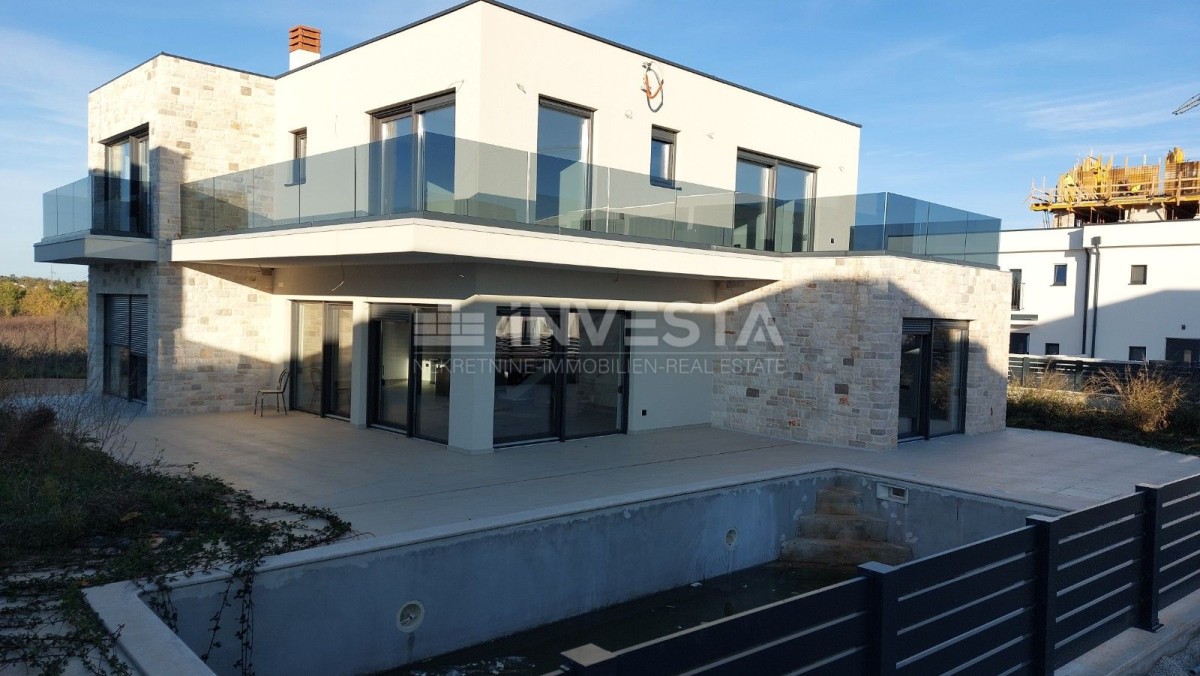 The villa was built in 2025 and is equipped with modern technological solutions ensuring high energy efficiency and comfort throughout the year: underfloor heating, air conditioning in all rooms, a heat pump, high-quality aluminum joinery, and preparation for solar panels.