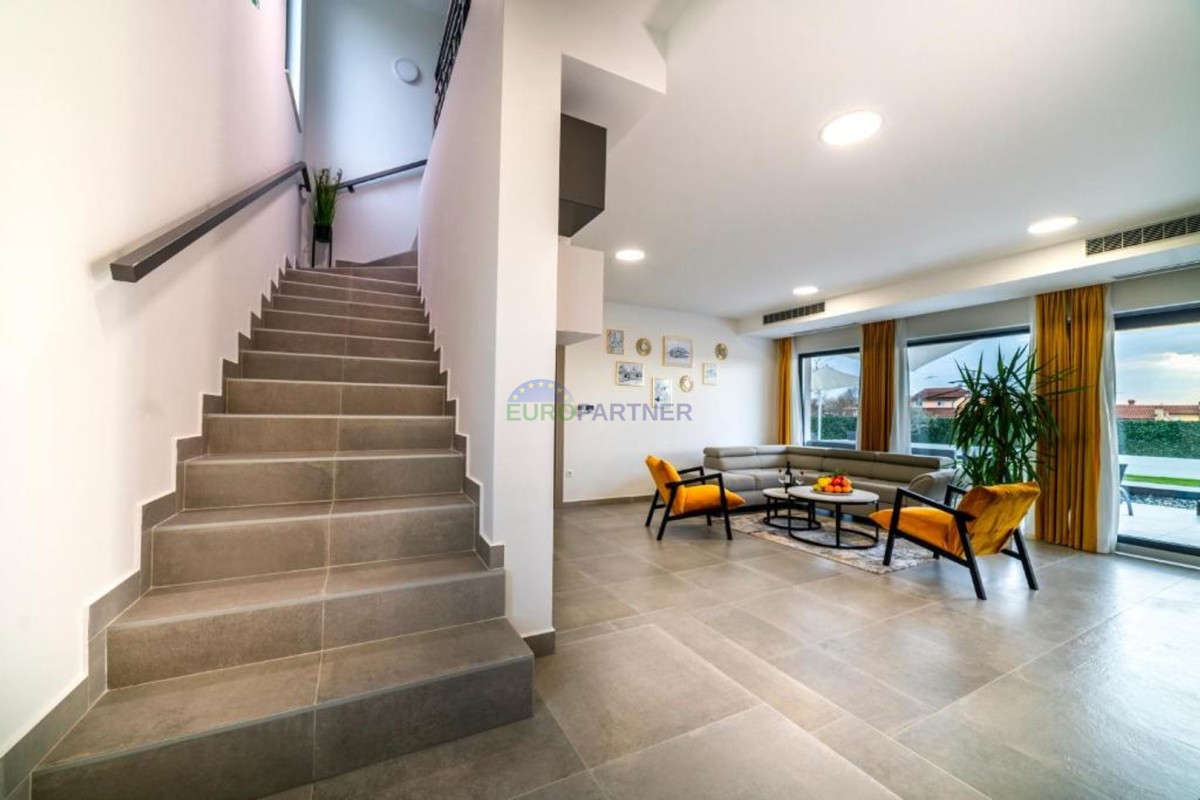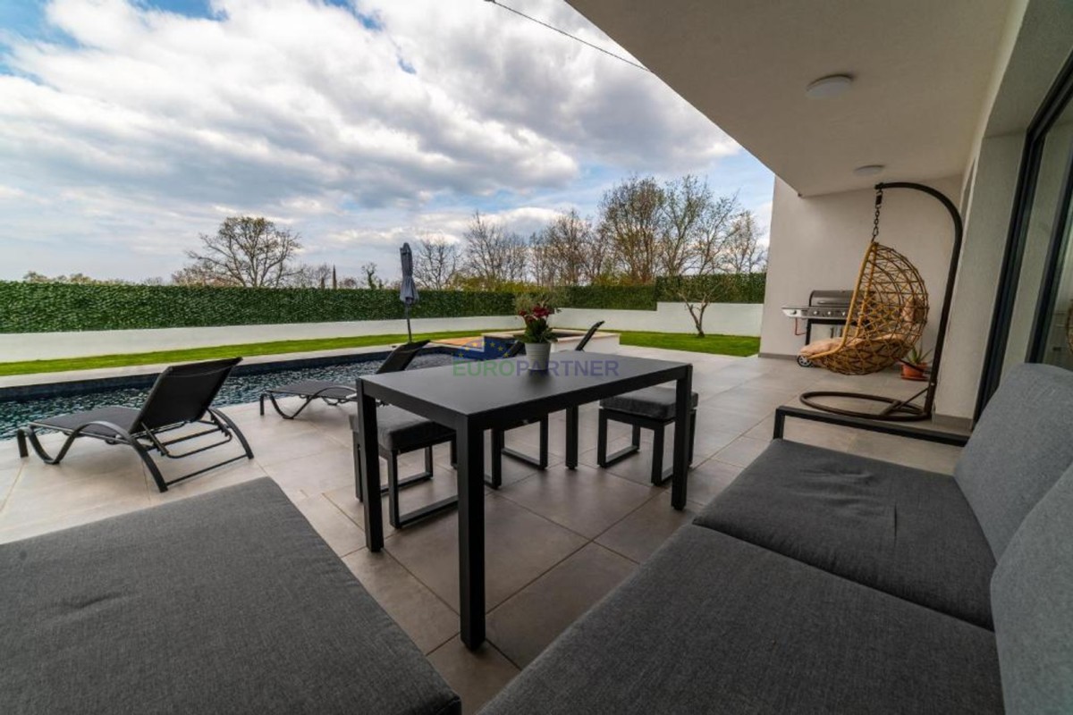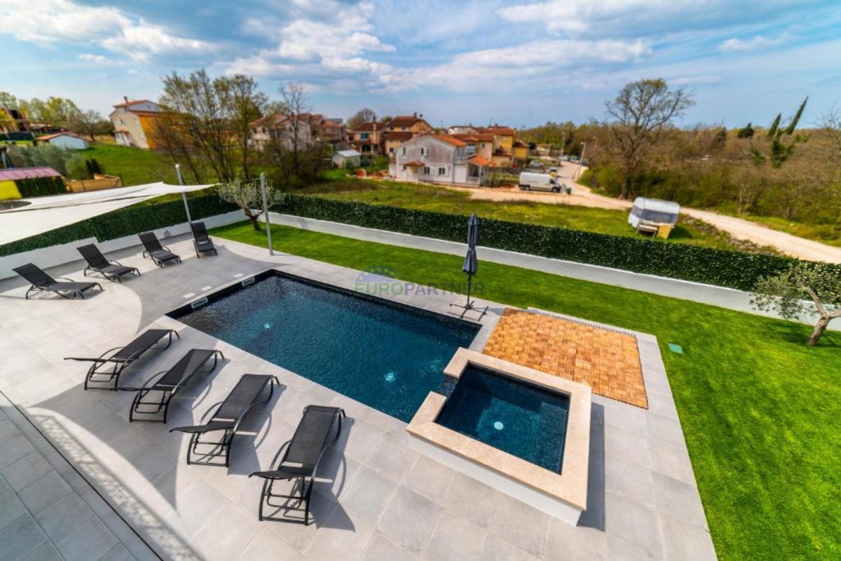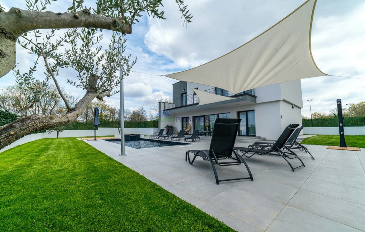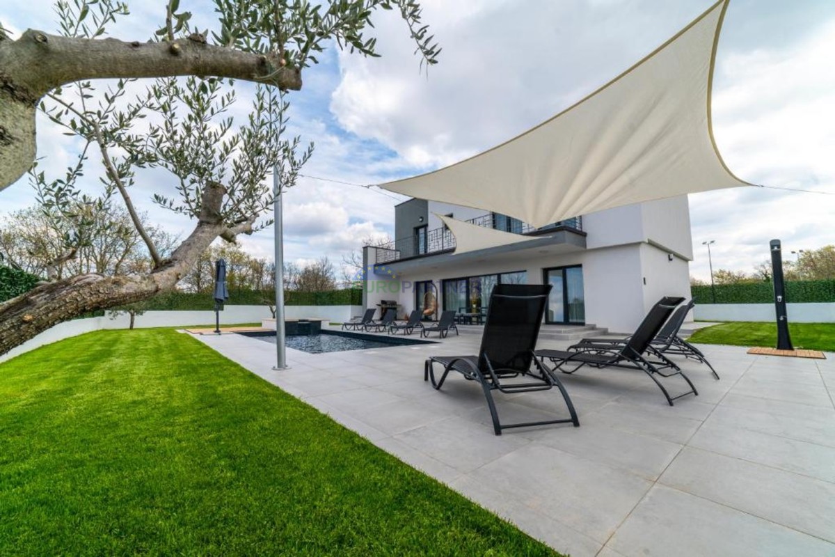 In beautiful Istria, which in addition to the crystal clear sea, beautiful bays and many interesting historic cities, hides fantastic locations where the view attracts new villas of different styles of construction and design. we present to you, a very modern look that fits perfectly into both the interior and exterior design. The main feature of this luxury villa is an attractive and timeless design. Designed as a villa that provides the owner with absolute comfort, its living area of 170m2 is distributed on two elegantly decorated floors: ground floor and first floor. The interior of the ground floor, which features an open floor plan with plenty of natural light, offers the atmosphere of a modern and urban home that fully celebrates modern design. It has a very dominant living room with a modern kitchen, dining room and living room with access to an outdoor covered terrace. An open staircase leads to the first floor of the house, which houses three bedrooms with attached bathrooms and a laundry room. The villa is fully air conditioned and heated via a heat pump, and underfloor heating is provided throughout the villa. The special charm of this charming villa is given by the swimming pool, which is located in a beautifully landscaped garden, surrounded by a relaxation area, sun deck and barbecue, and as such allows for a hedonistic dream vacation. The fenced garden of 592 square meters is rich in greenery that protects it from unwanted views, leaving a view of the beautiful nature that surrounds the villa. Other notes: The property can be viewed by signing a brokerage contract, the broker's commission is 3.75% including VAT of the purchase price and will be invoiced after the purchase contract has been concluded.