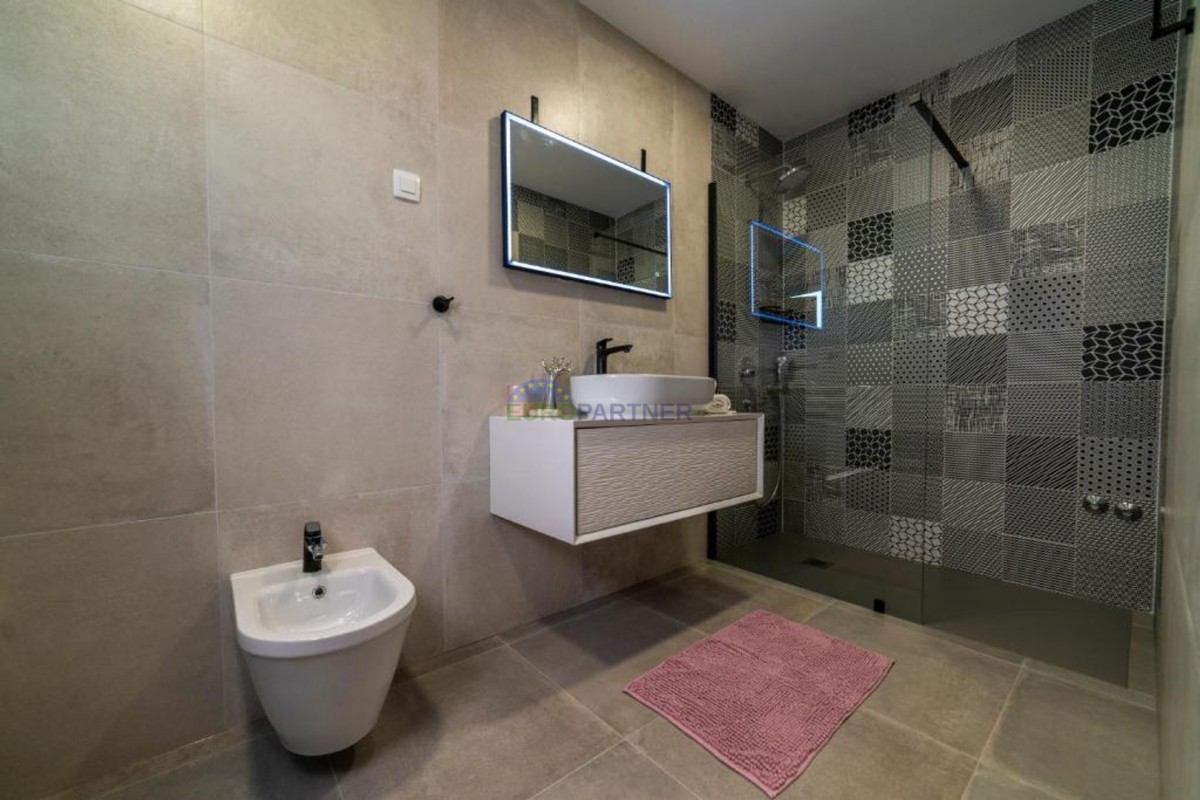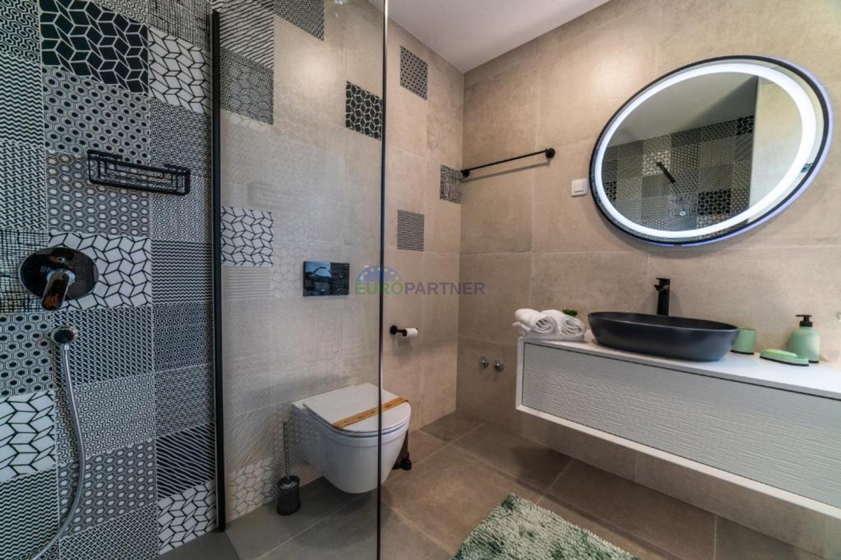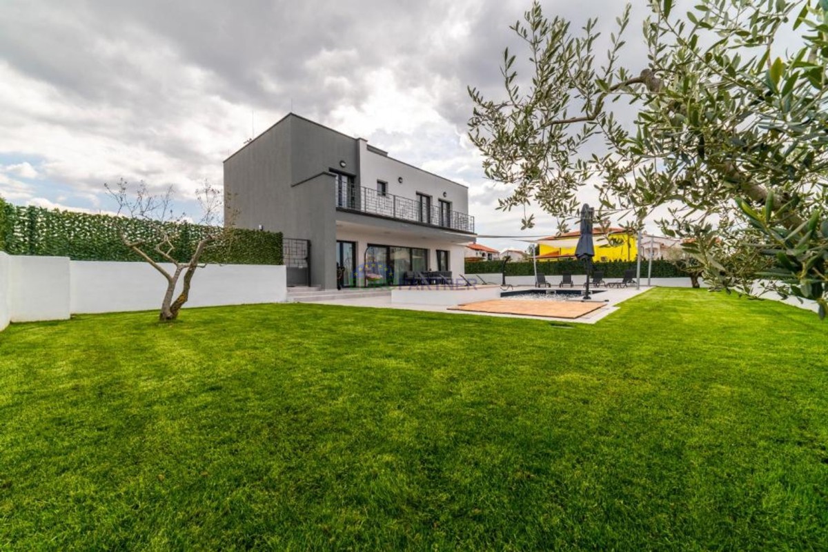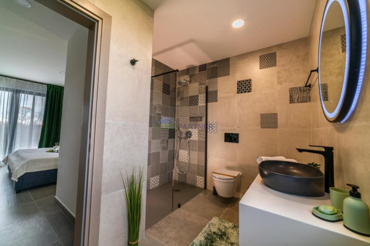 In beautiful Istria, which in addition to the crystal clear sea, beautiful bays and many interesting historic cities, hides fantastic locations where the view attracts new villas of different styles of construction and design. we present to you, a very modern look that fits perfectly into both the interior and exterior design. The main feature of this luxury villa is an attractive and timeless design. Designed as a villa that provides the owner with absolute comfort, its living area of 170m2 is distributed on two elegantly decorated floors: ground floor and first floor. The interior of the ground floor, which features an open floor plan with plenty of natural light, offers the atmosphere of a modern and urban home that fully celebrates modern design. It has a very dominant living room with a modern kitchen, dining room and living room with access to an outdoor covered terrace. An open staircase leads to the first floor of the house, which houses three bedrooms with attached bathrooms and a laundry room. The villa is fully air conditioned and heated via a heat pump, and underfloor heating is provided throughout the villa. The special charm of this charming villa is given by the swimming pool, which is located in a beautifully landscaped garden, surrounded by a relaxation area, sun deck and barbecue, and as such allows for a hedonistic dream vacation. The fenced garden of 592 square meters is rich in greenery that protects it from unwanted views, leaving a view of the beautiful nature that surrounds the villa. Other notes: The property can be viewed by signing a brokerage contract, the broker's commission is 3.75% including VAT of the purchase price and will be invoiced after the purchase contract has been concluded.