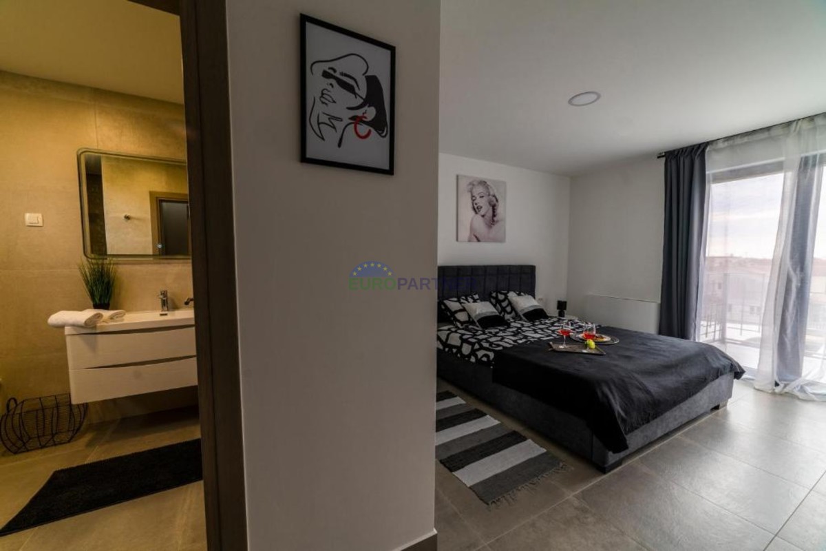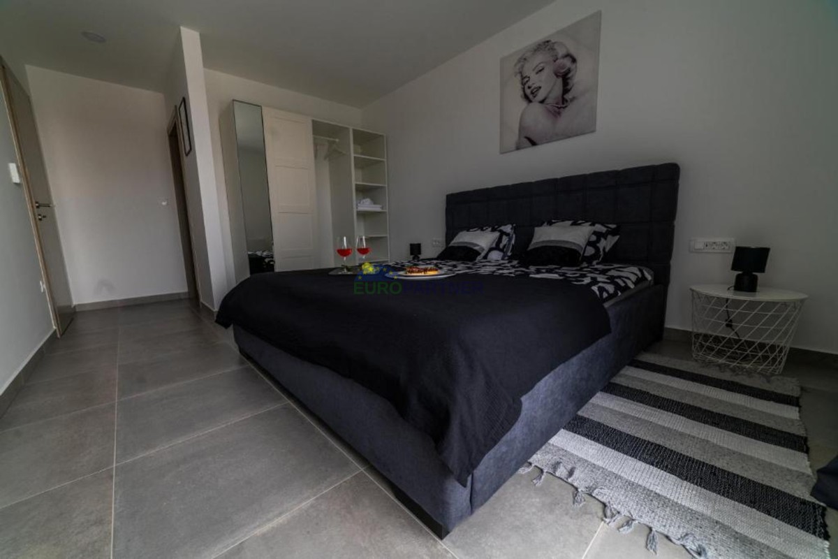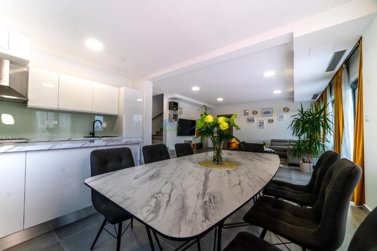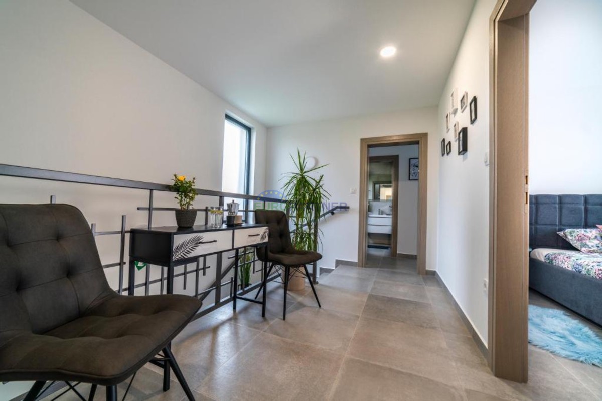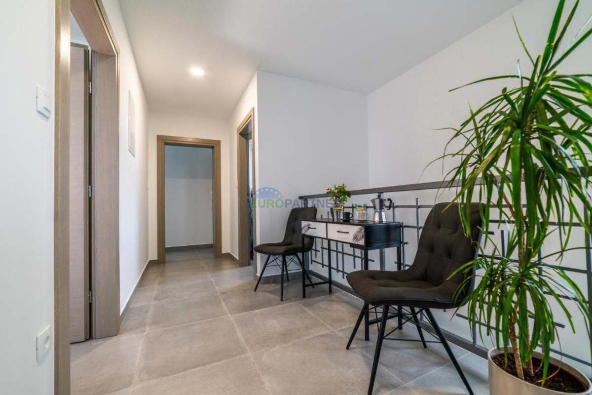 In beautiful Istria, which in addition to the crystal clear sea, beautiful bays and many interesting historic cities, hides fantastic locations where the view attracts new villas of different styles of construction and design. we present to you, a very modern look that fits perfectly into both the interior and exterior design. The main feature of this luxury villa is an attractive and timeless design. Designed as a villa that provides the owner with absolute comfort, its living area of 170m2 is distributed on two elegantly decorated floors: ground floor and first floor. The interior of the ground floor, which features an open floor plan with plenty of natural light, offers the atmosphere of a modern and urban home that fully celebrates modern design. It has a very dominant living room with a modern kitchen, dining room and living room with access to an outdoor covered terrace. An open staircase leads to the first floor of the house, which houses three bedrooms with attached bathrooms and a laundry room. The villa is fully air conditioned and heated via a heat pump, and underfloor heating is provided throughout the villa. The special charm of this charming villa is given by the swimming pool, which is located in a beautifully landscaped garden, surrounded by a relaxation area, sun deck and barbecue, and as such allows for a hedonistic dream vacation. The fenced garden of 592 square meters is rich in greenery that protects it from unwanted views, leaving a view of the beautiful nature that surrounds the villa. Other notes: The property can be viewed by signing a brokerage contract, the broker's commission is 3.75% including VAT of the purchase price and will be invoiced after the purchase contract has been concluded.