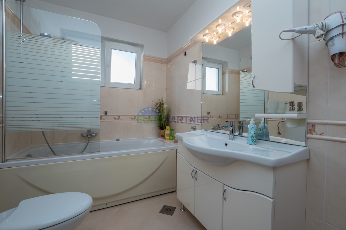 This spacious duplex apartment of 90 m2 is located in a quiet residential area of Poreč, just 800 meters from the sea and beach and 3 km from the picturesque city center. It is located on the first floor and offers the perfect combination of comfort, functionality and a beautiful sea view.