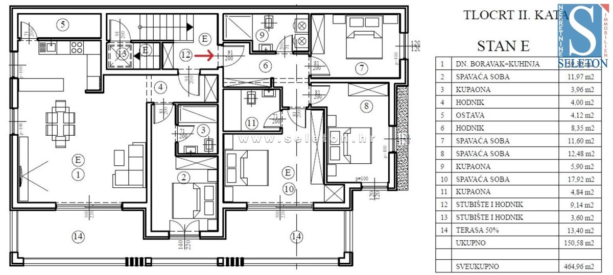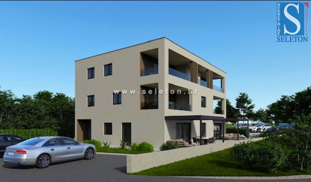 Poreč, in a quiet urban area, an apartment under construction with an area of 150.58 m² is for sale, consisting of a living room, kitchen, dining room, covered terrace, hallway, 4 bedrooms, 3 bathrooms and storage room. The apartment is located on the second floor of a building with a total of 5 residential units, it has 5 air conditioners (in the living room and bedrooms), underfloor heating throughout the apartment, security entrance door, PVC windows with mosquito nets and 2 parking spaces in front of the building. The apartment is 800 m from the sea/beach and 1 km from the center of Poreč.