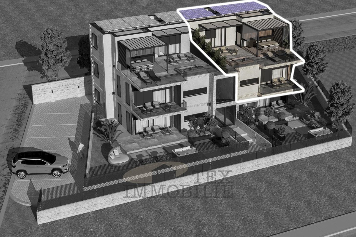 This elegant apartment offers comfort and practical accommodation on the first floor of a residential building, consisting of only four units, each with its own independent entrance and parking space. This spacious apartment with a net area of 125.55 m² (gross 171 m²), designed with a well-thought-out layout, includes a spacious living room merging with the kitchen and dining area, opening up to a terrace of 10.2 m². The apartment also features two comfortable bedrooms and bathrooms. On the second floor, there are two more bedrooms (if desired by buyers, a master bedroom with a wardrobe and bathroom can be created), a bathroom, and a stunning terrace of as much as 53.8 m² that provides a sea view.
