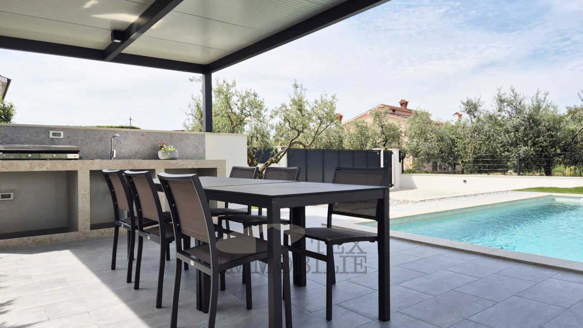 A beautiful villa for sale, ideally located just 5 km from the beach and 5.5 km from the center of Poreč. The villa offers the perfect combination of comfort, quality construction, and a peaceful setting – ideal for family living, holidays, or rental investment.
