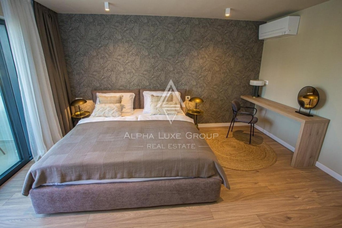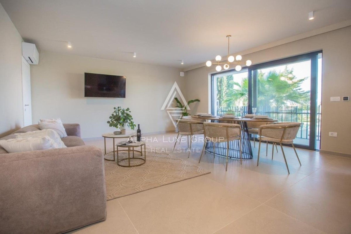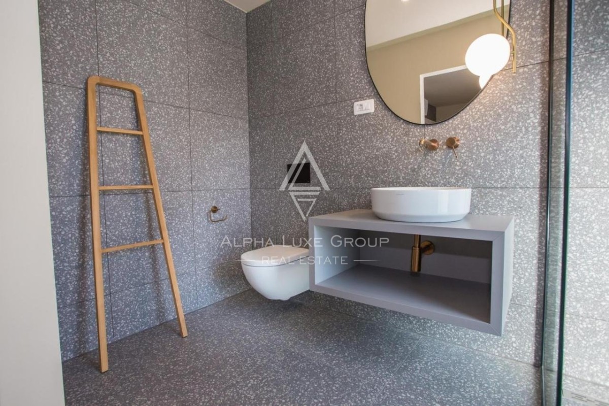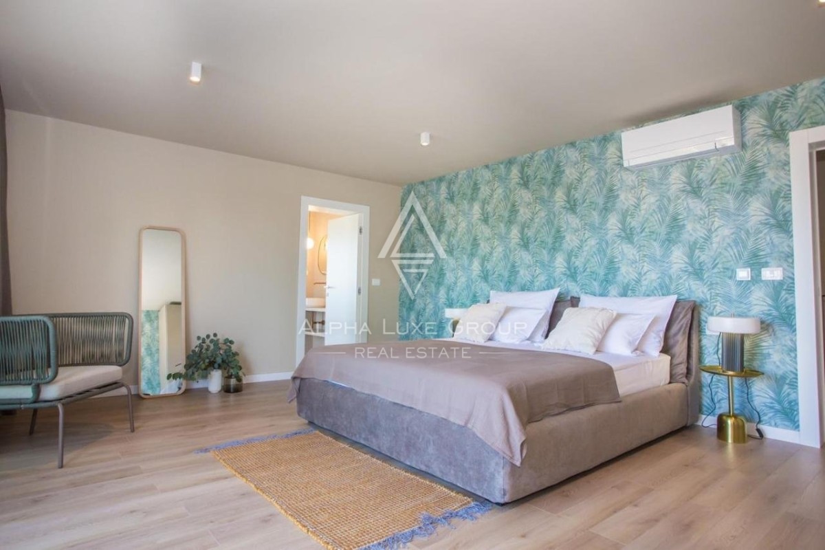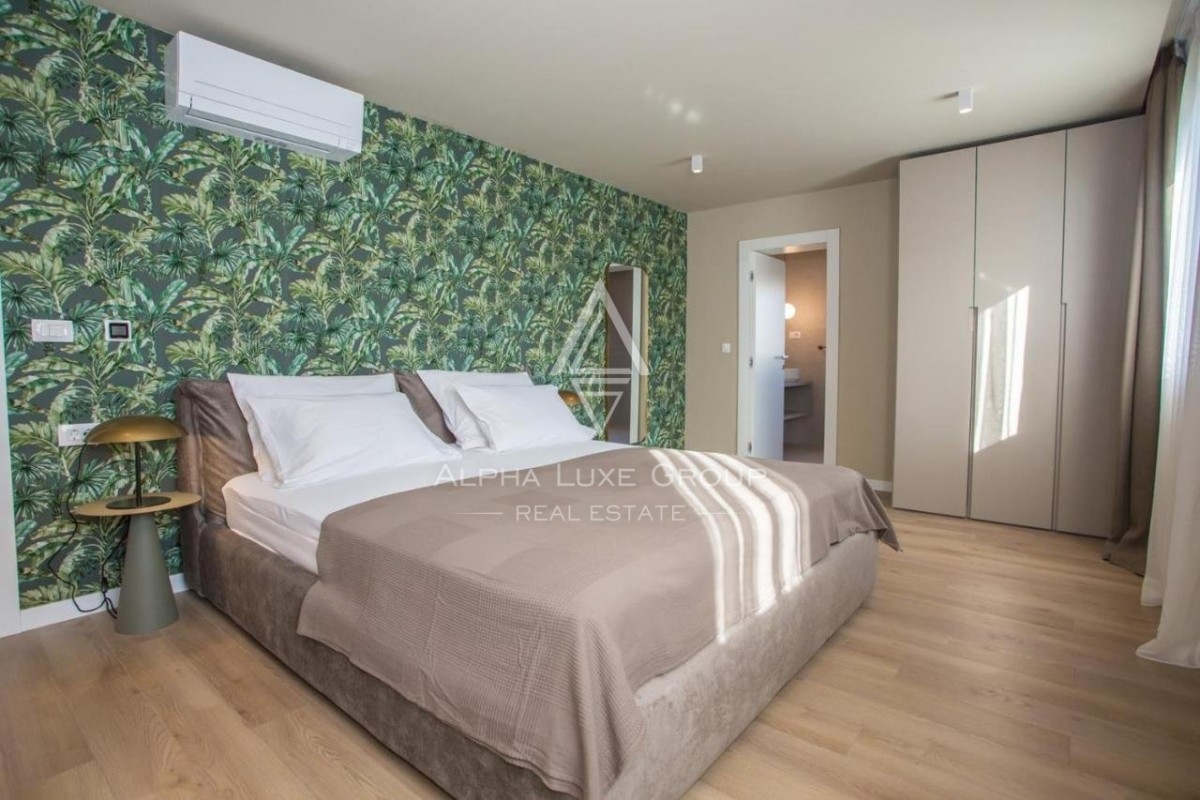 Delve into the modern luxury cradled within a city that wears its Venetian heritage with pride. Positioned a mere kilometer away from the shimmering Adriatic Sea and pristine beaches, this sumptuous villa in Poreč boasts 683 m2 of meticulously designed space, segmented into three distinct units. Every corner reflects finesse - from the sunlit living areas adorned with expansive glass structures to the chic kitchens embracing a sophisticated contemporary touch. Complementing the ground floor is a cozy bedroom, ample storage, and two lavishly decorated bathrooms. The upper level opens to two captivating bedrooms, each with en suite bathrooms and terraces offering mesmerizing sea views.