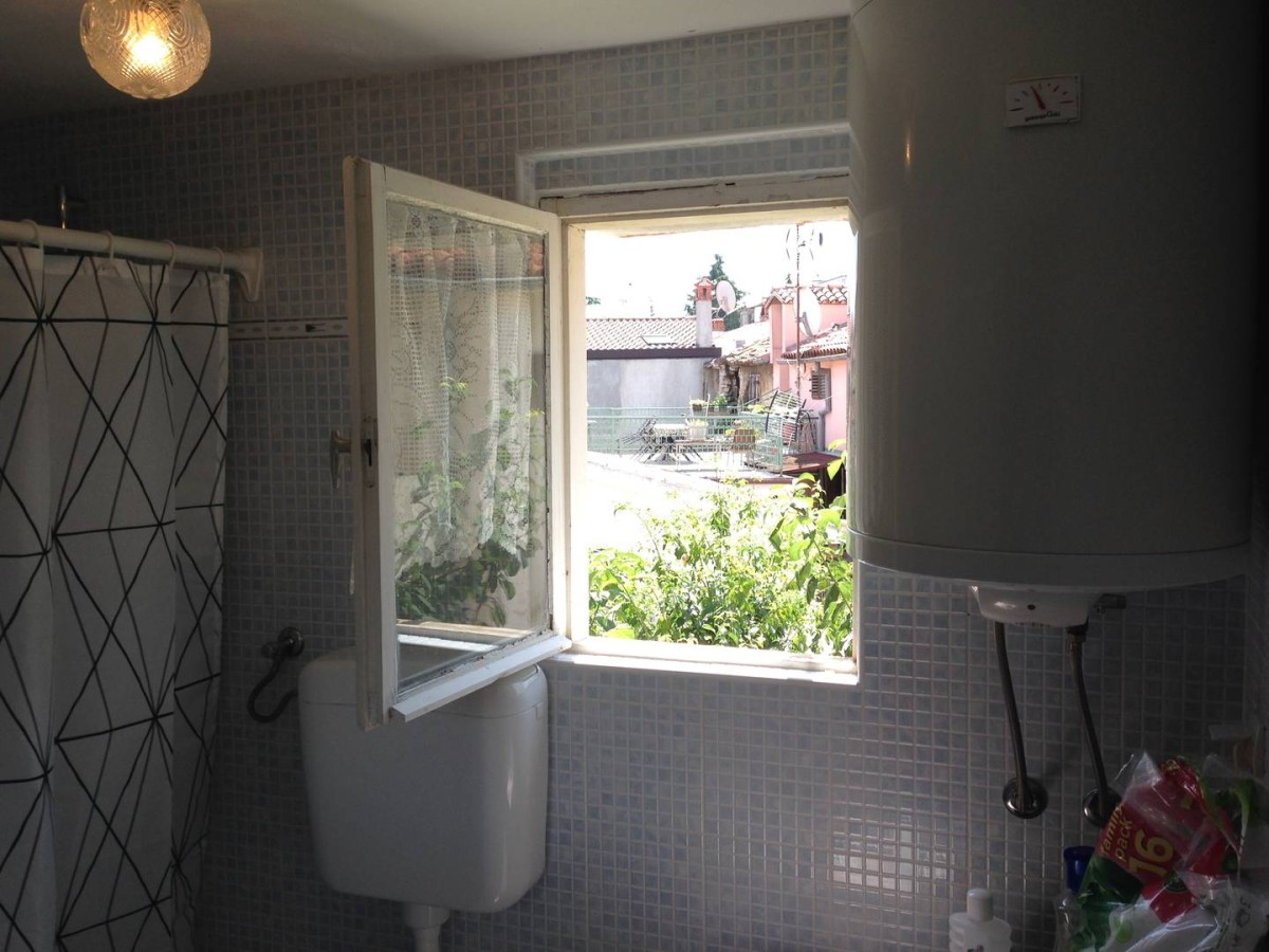 An apartment is for sale in the strict center of Poreč. The apartment consists of 3 separate bedrooms, a kitchen, a bathroom, a hallway, and a staircase.