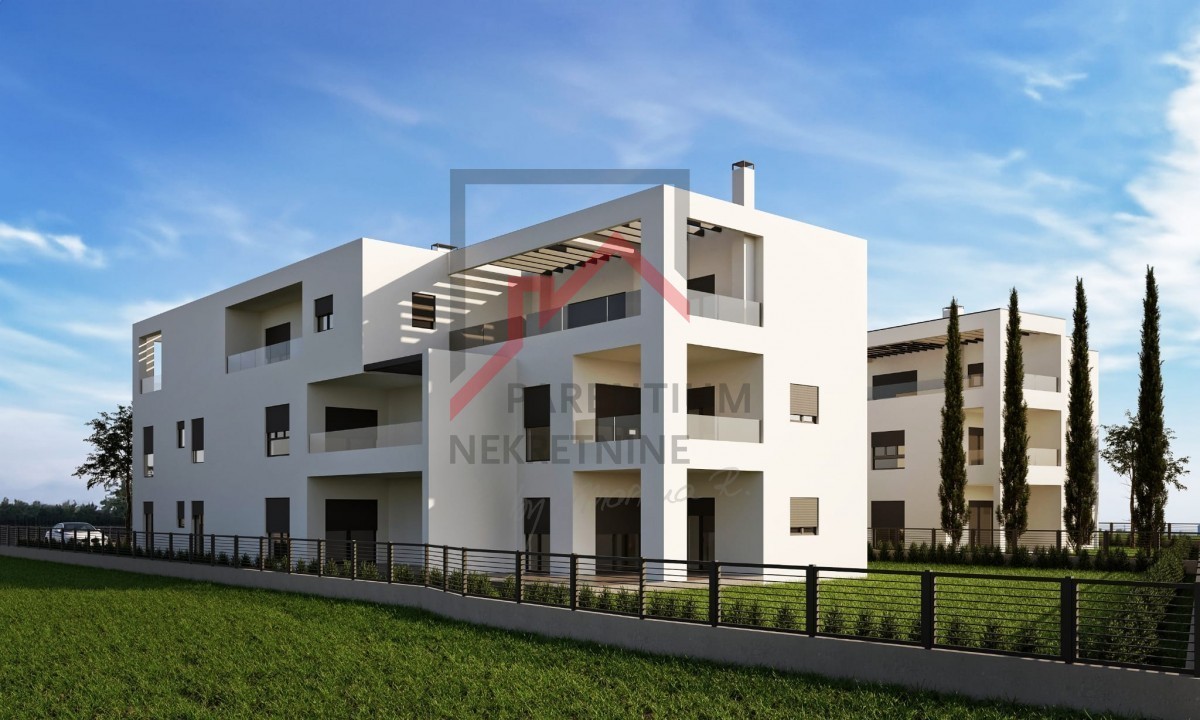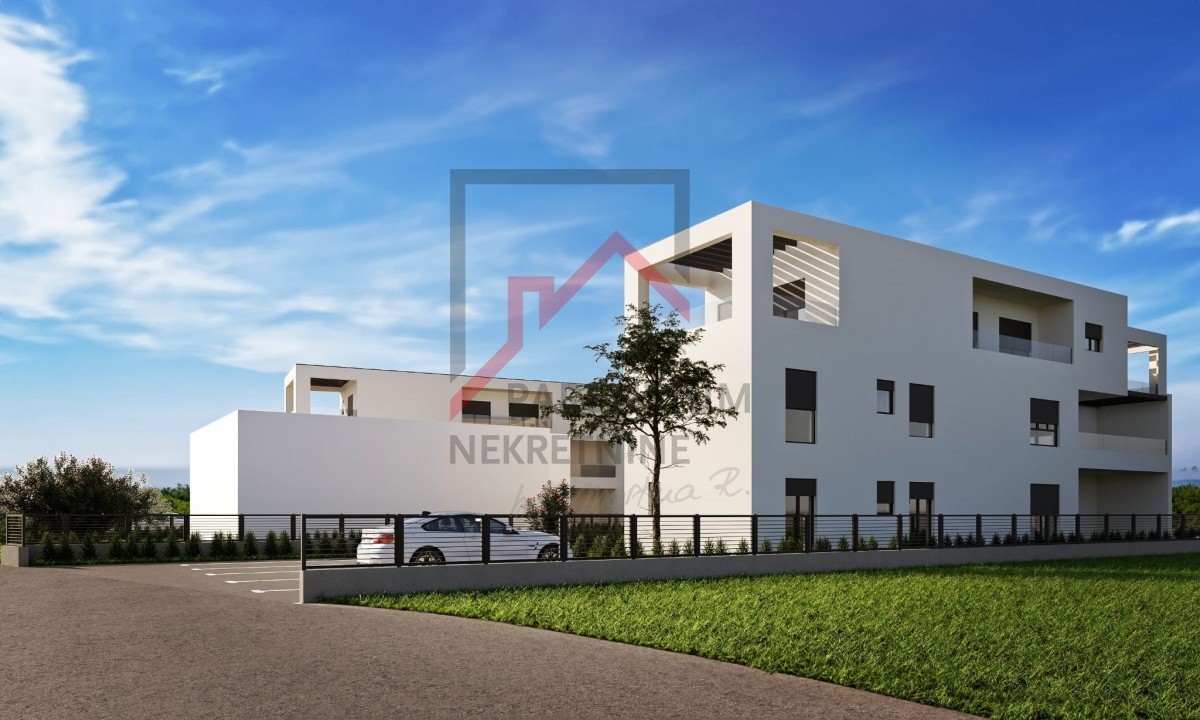 A beautiful apartment is for sale in a new residential building with 5 luxury apartments, located on the edge of the urban zone, which ensures additional privacy. The 161 m² apartment consists of a spacious living room with a large kitchen and dining area that opens onto a large terrace with a jacuzzi, two comfortable bedrooms, two bathrooms, a toilet, two storage rooms, a sauna, and a fitness room. The fitness room has direct access to an uncovered sunbathing area. Each bedroom has its own terrace.