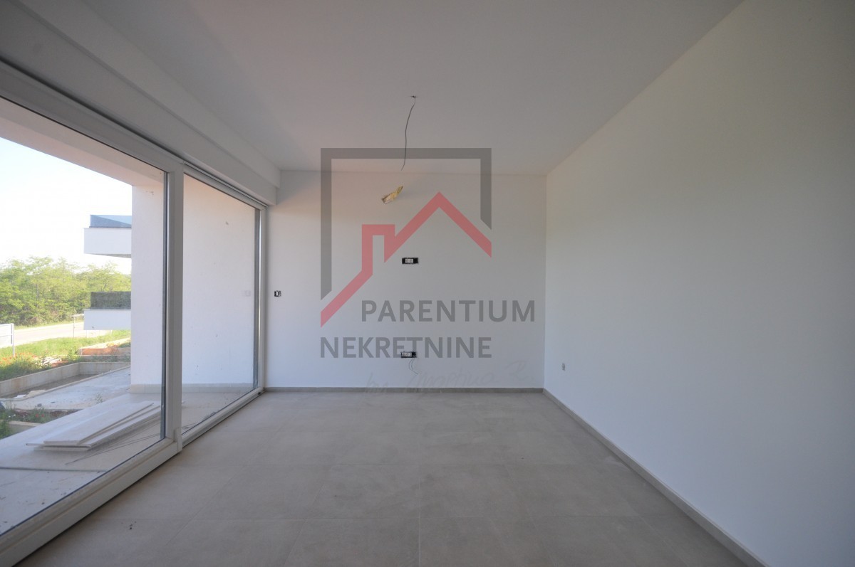 In the vicinity of the town of Poreč, this interesting two-bedroom ground floor apartment with a garden is for sale in a building with 8 apartments. The apartment has a total of 56 m² and consists of a living room, dining area, kitchen, two bedrooms, and a bathroom. The apartment also includes a garden of 80 m² and two parking spaces in front of the building. The sea can be seen from the terrace.