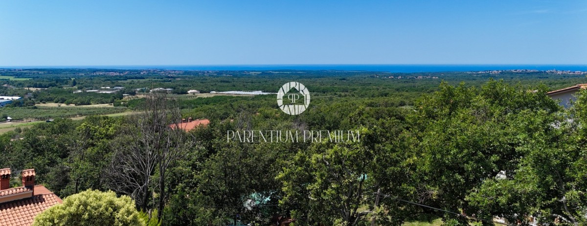 A building plot is for sale in a peaceful location near Poreč, ideal for the construction of a modern semi-detached villa. The plot is of regular shape, with a total area of 602 m², and is situated on elevated ground offering an open view of the sea.