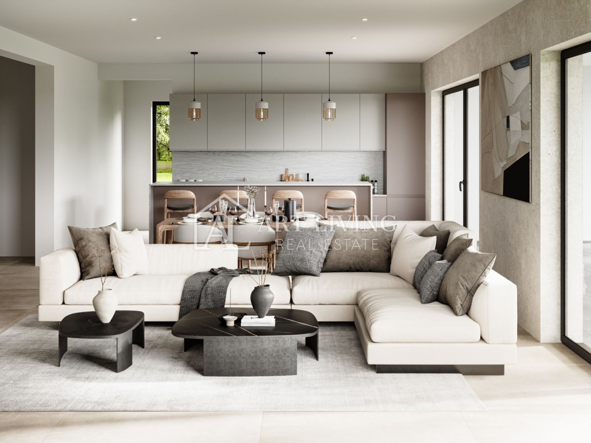 A luxury villa of modern design in a new building is for sale, close to all important facilities (shops, restaurants, parks), 2.7 km from the sea and 9 km from the city of Poreč.