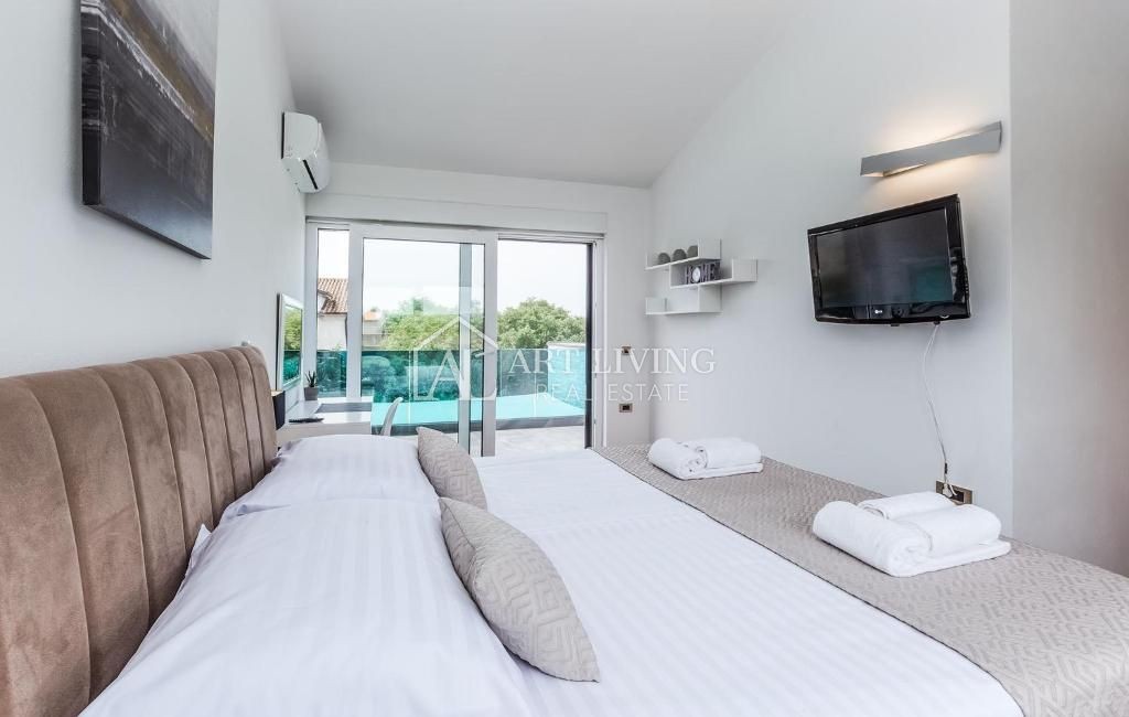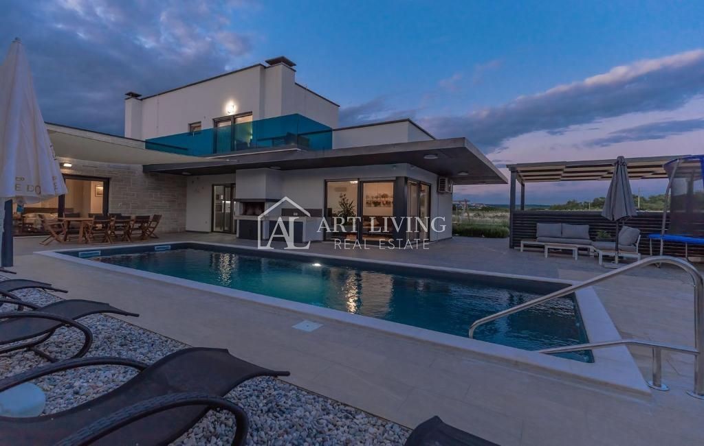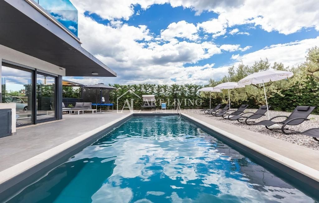A beautiful Villa of modern architecture with a swimming pool and an open view of the beautiful Istrian landscape is for sale. The villa is located in a quiet location and is surrounded by nature and greenery. It is 10 km from the sea, the city of Poreč and its beaches.