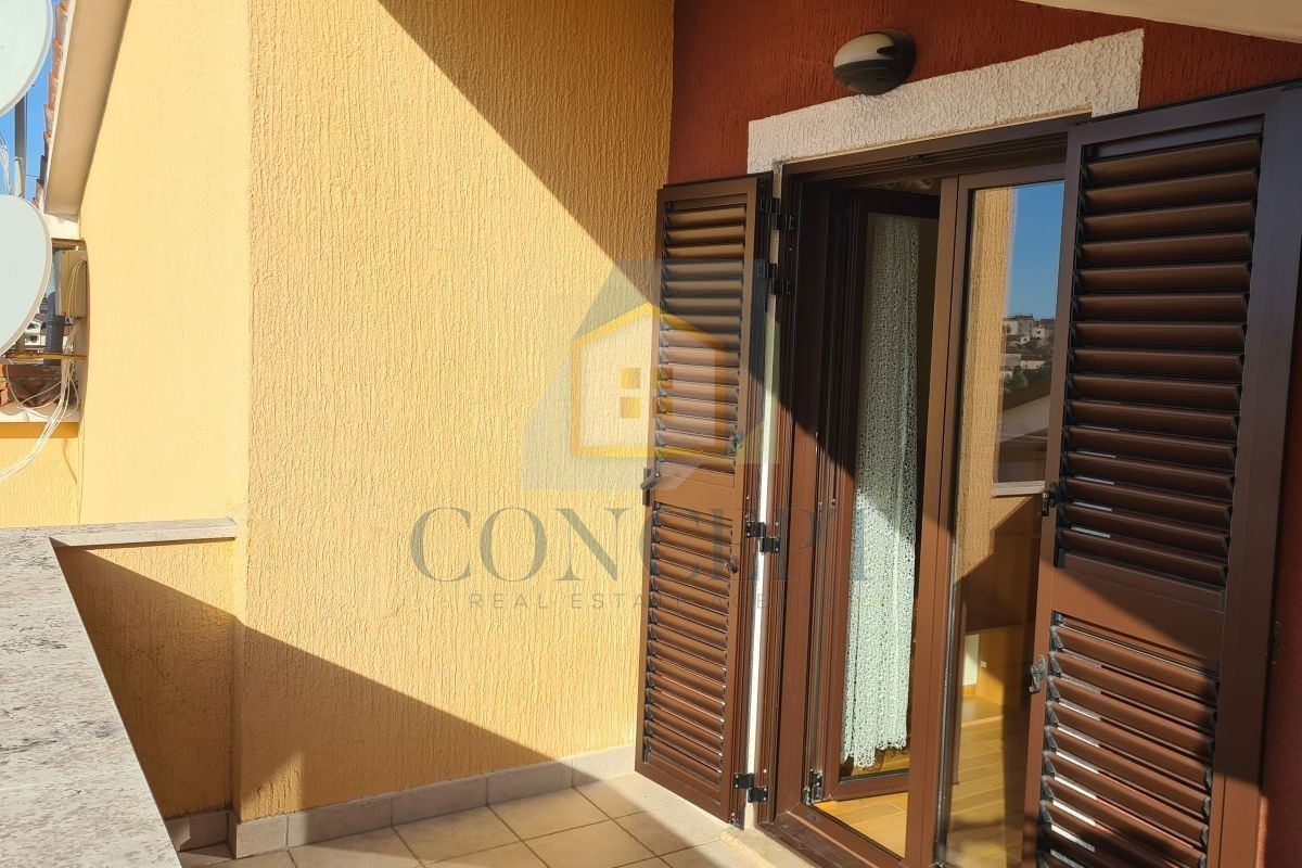 For sale is a spacious two-bedroom apartment on the second floor of a small building with three apartments, constructed in 1994. The apartment has a net living area of 87.46 m² and a total area of 102.76 m², including a balcony and covered terrace.