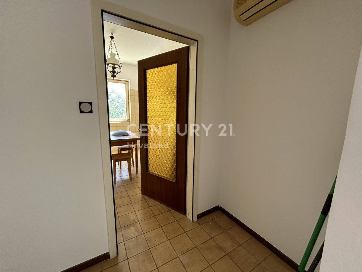 The apartment is located on the ground floor of a residential building with four apartments. The apartment consists of an entrance hall, a spacious living room, a kitchen with a dining area, a bathroom, a toilet, two bedrooms, a storage area of 6 m2, and a covered terrace. The apartment also owns a landscaped yard of 195 m2. The apartment is sold unfurnished, heating and cooling is ensured by air conditioning, but it also has a chimney and the possibility of heating with a wood or pellet stove. All important amenities such as beaches, city center, playground, kindergarten, school, shops, restaurants are within walking distance of 200-500 meters. An extremely attractive and desirable location make this property perfect both for living and for vacation, and as an investment for tourist purposes in its full potential. Ownership in order.