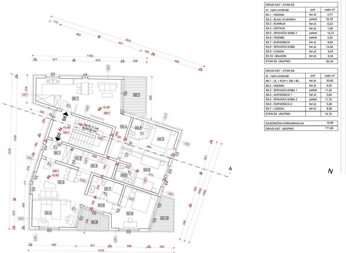 The apartment is located on the second floor of a modern building with a total of 6 residential units.