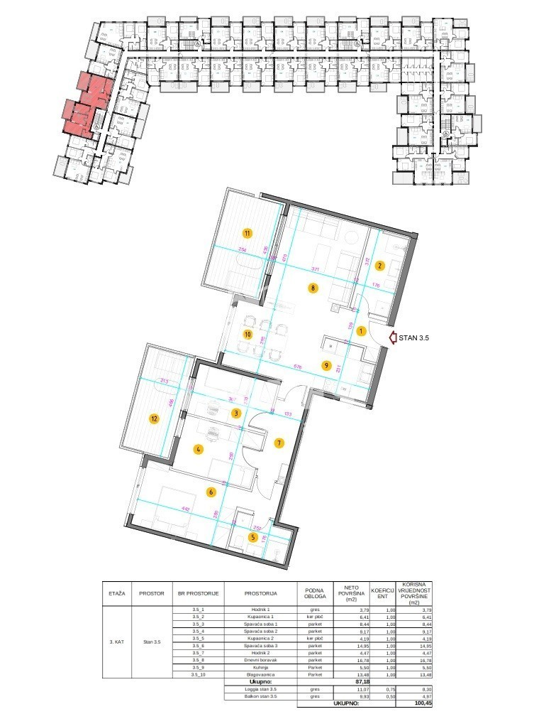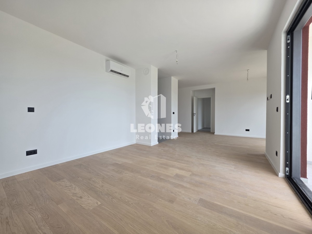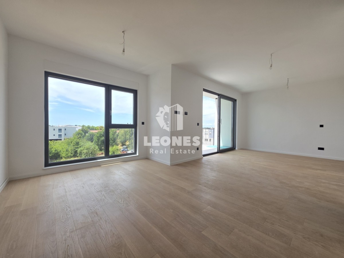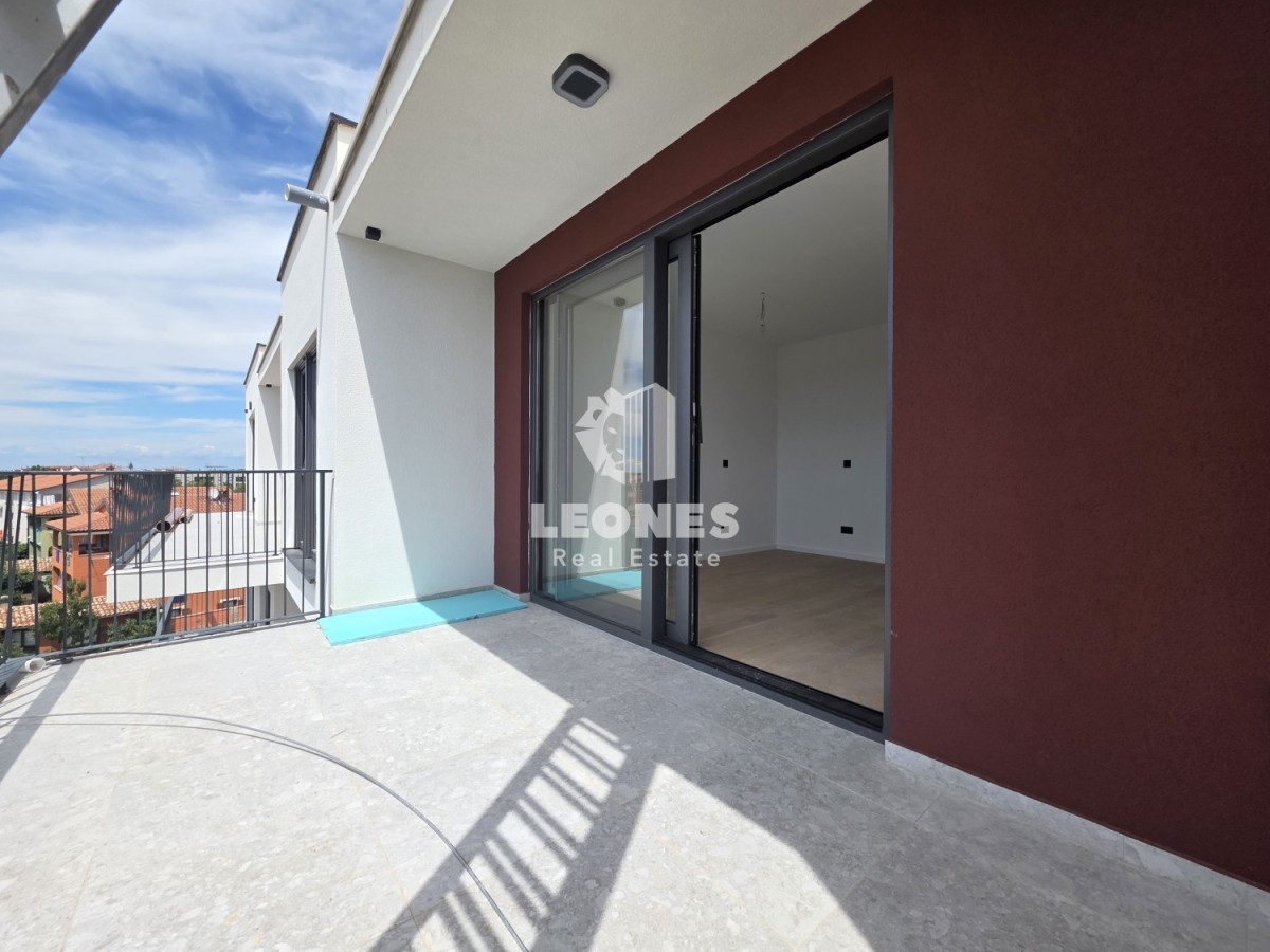 Three-bedroom apartment for sale in a quality new building in Umag. The net usable area of the apartment is 100.45 m2. The apartment is located on the third floor of a residential building and consists of a living room and kitchen, 3 bedrooms, 2 bathrooms and 2 terraces. It has a storage room of 3.44 m2 and one garage parking space and 2 outdoor parking spaces.
