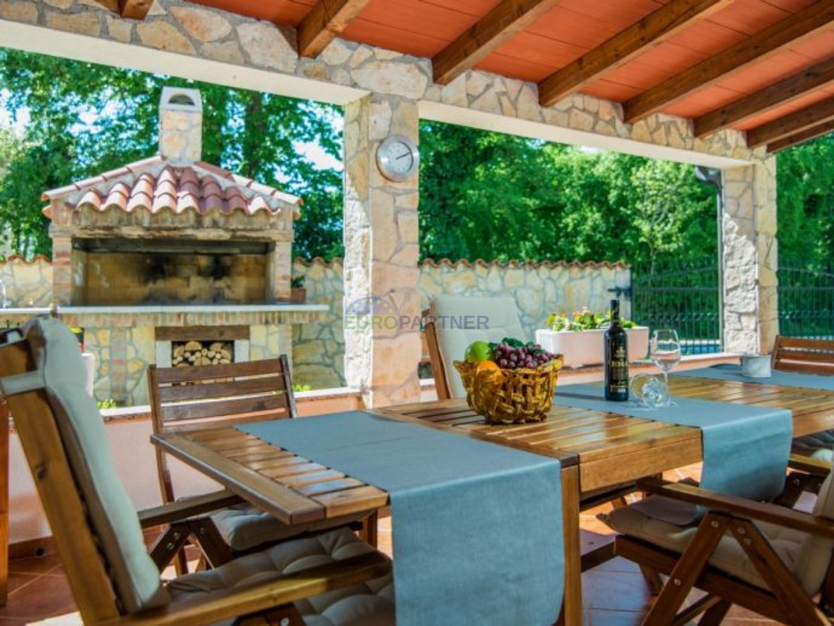 In the front part of the garden, in front of the house, there is a spacious covered terrace of 28 m2 that provides refreshment and shade in hot summer periods. There is a large outdoor grill in front of it.