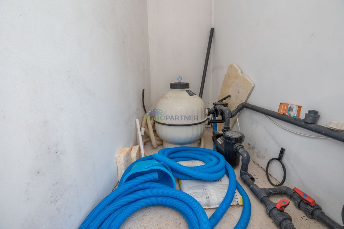 Behind the house, the garden is decorated with a beautiful swimming pool with a sunbathing area. Below is an additional house with utility rooms. The yard is surrounded by a wall and has its own peace and privacy.