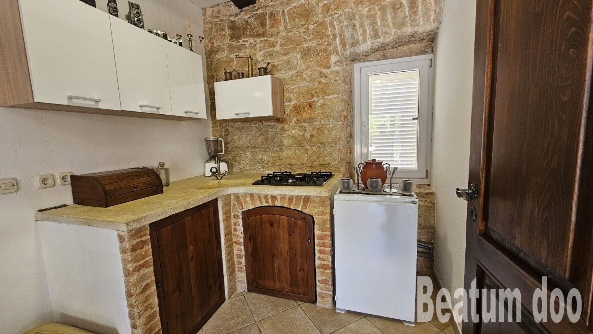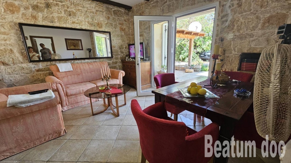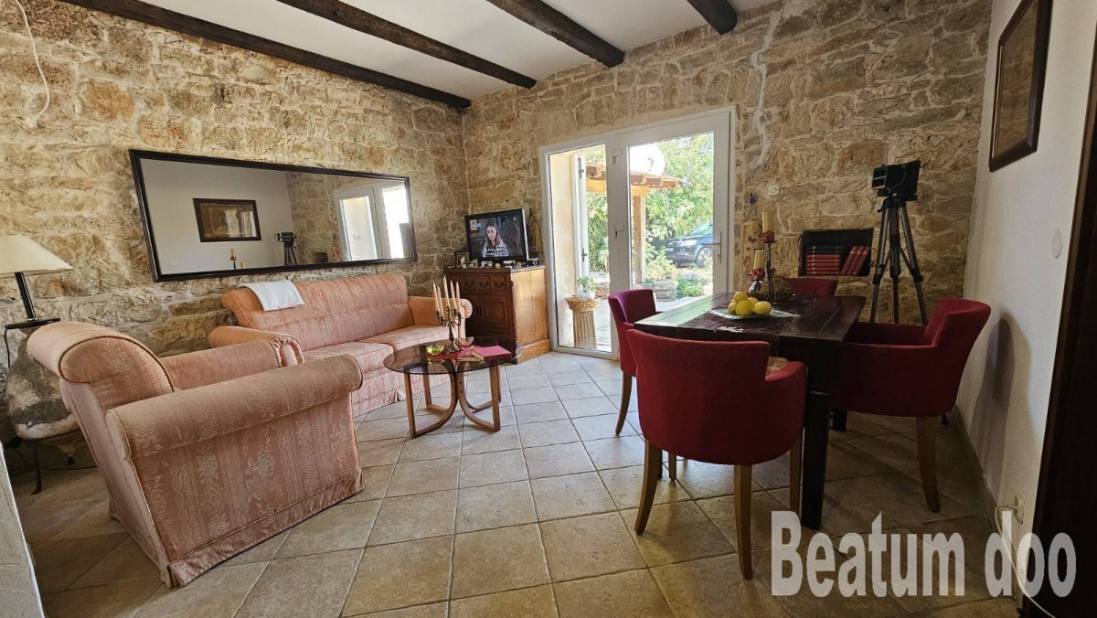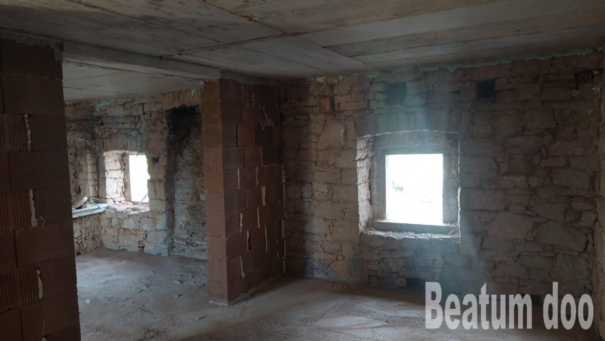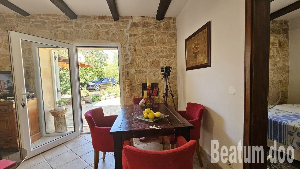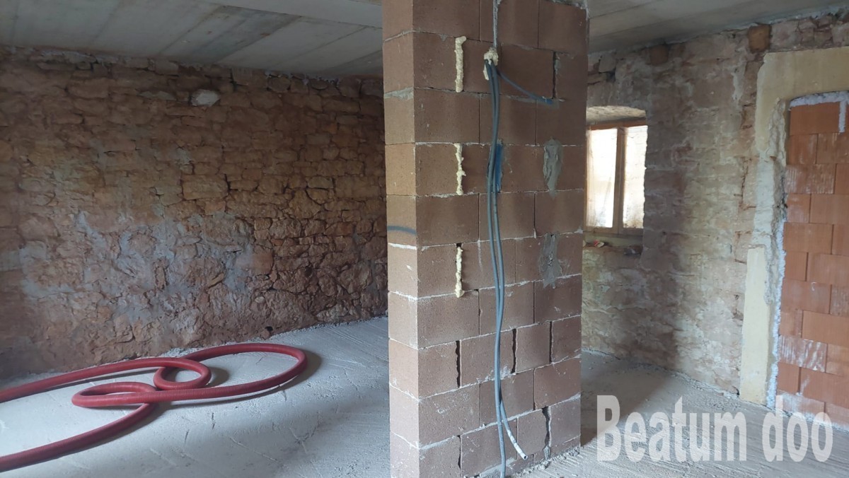 Two stone houses in a row in the center of Višnjan are for sale, with a garden behind the house, the smaller house is a one-story house with one bedroom and partially renovated, the larger house has been renovated, the stone has been removed from the walls, the roof has been replaced, and the mezzanine structures are being concreted. The house has three floors with 35m2 each. you can see the sea from the second floor.