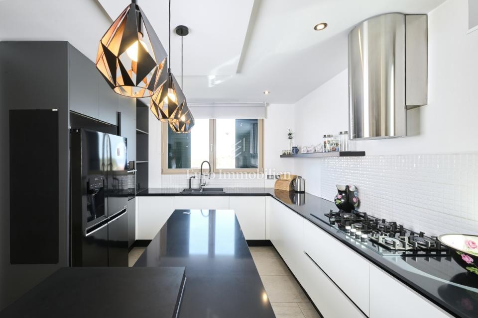 The house features high energy efficiency with underfloor heating and cooling via heat pump, pellet stove, quality insulation, and secure aluminium-wood windows. The garden includes a 9 × 4 m pool, two parking spaces on each side of the house, and a camera surveillance system.