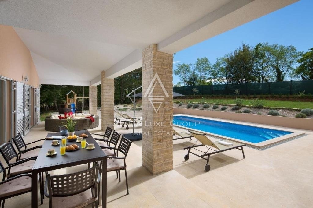 An internal staircase leads to his first floor, where he has two ensuite bedrooms and a covered terrace. The spacious landscaped gardens are fully fenced and equipped with an automatic irrigation system. The courtyard extends to a 42 m² heated saltwater pool, children's playground, and barbecue area with a fireplace.