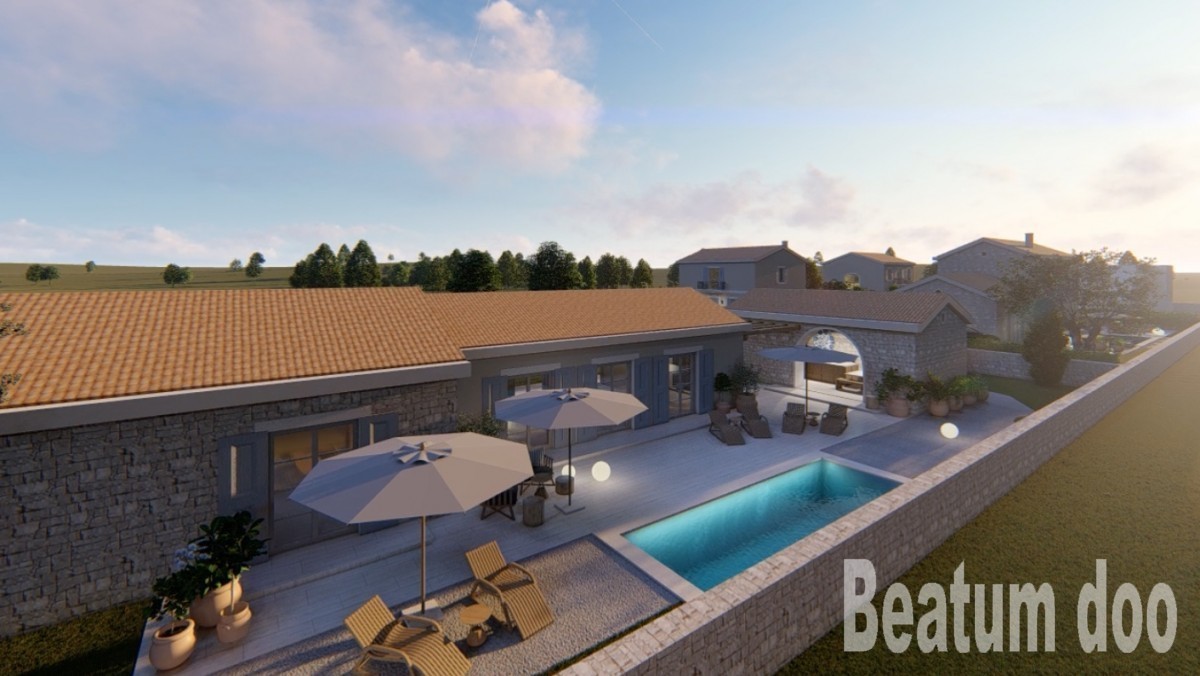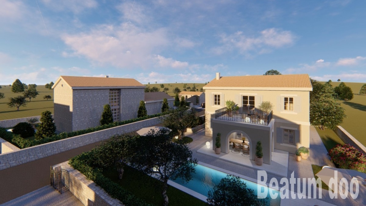 Three bedrooms, four bathrooms, kitchen + dining room, living room, covered terrace