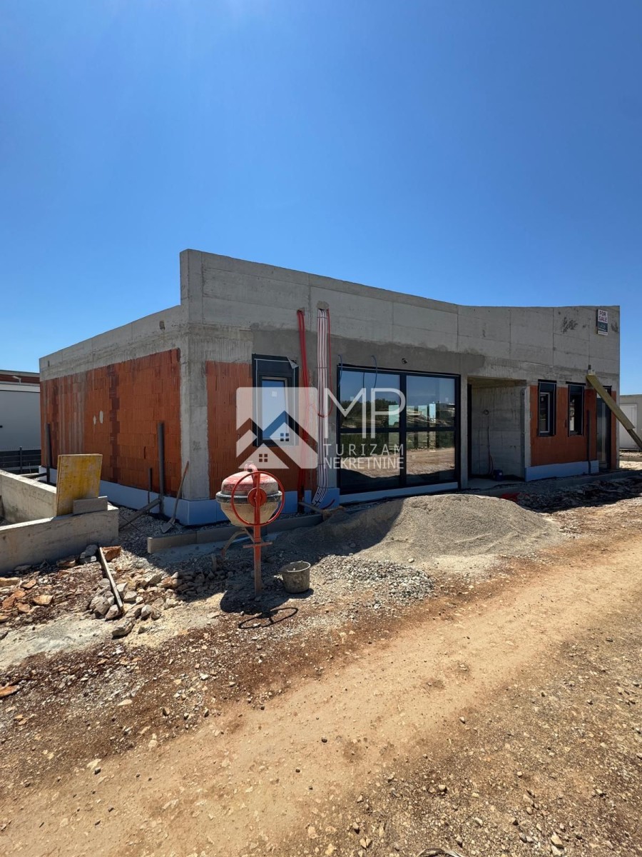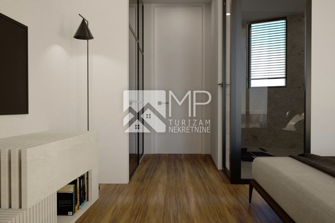 The villa, designed by a renowned architect, represents the perfect combination of modernity and artistic expression, conceived as a ground floor house with two bedrooms, each with its own bathroom, a spacious living room with a kitchen and dining room of the “open space” concept with large windows that provide natural light and a spectacular view of the swimming pool ideal for refreshment and enjoyment with family and friends, a guest toilet, a utility room, a hallway and a foyer.