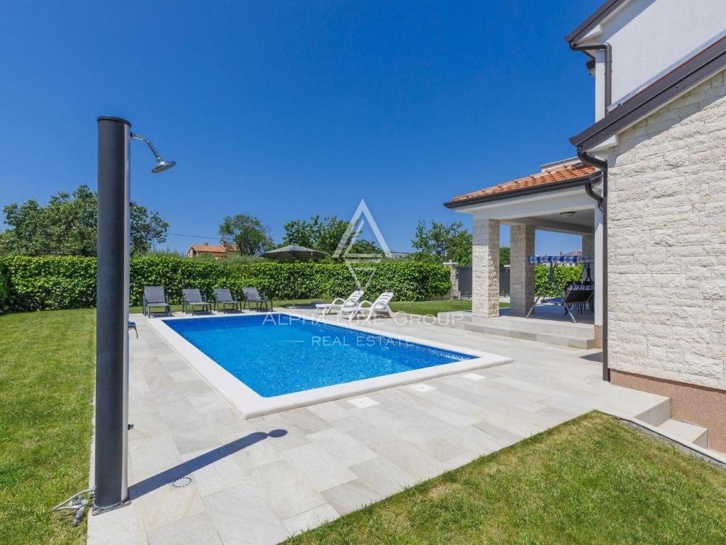 Ova prekrasna vila ukupne površine 132m2 nalazi se u mirnom dijelu nedaleko Poreča, cca 5 km od grada i prvih plaža, na otprilike velikom zemljištu. 650m2.