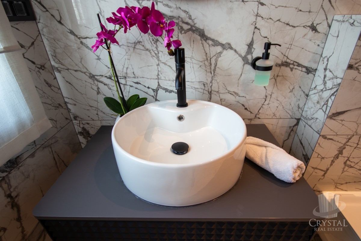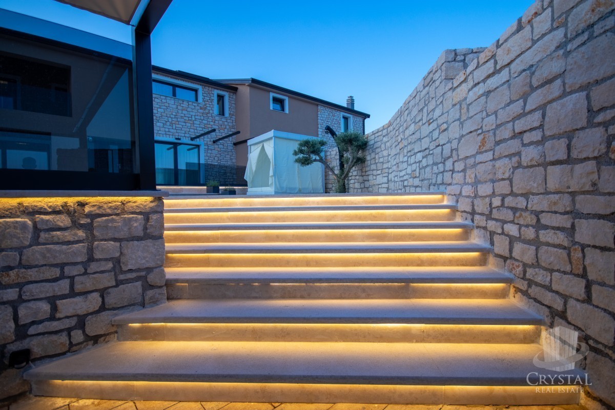U prekrasno uređenom dvorištu nalazi se bazen sa sunčalištem, jacuzzi i natkriveni parking, čineći ovu nekretninu savršenom za uživanje i opuštanje.