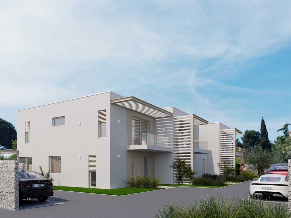 3B Ekskluzivna prodaja- cca 55 km od Pule i aerodroma, u Kašteliru, mjestu sa odličnom infrastrukturom, pogodnim za kvalitetan život- Kaštelir Labinci uvršten je u programu Svjetske turističke organizacije za najbolje turističko selo – prodaje se kvalitetna moderna kuća u nizu u izgradnji sa bazenom, cca 9 km od mora i cca 12 km od Poreča- kuća se nalazi na jako lijepo lokaciji u blizini centra a opet dalje od prometa, u uređenom naselju- Kuća od 137,25 m2 prostire se na dvije etaže. Prizemlje se sastoji od: natkrivenog ulaza, hodnika, dnevnog boravka , kuhinje i blagovaonice, kupaonice, spremišta, ostave i terase- kat se sastoji od: hodnika, gospodarskog prostora, dvije spavaće sobe svaka sa svojim kupatilom i izlazom na terasu. Kupatila će biti opremljena armaturama i sanitarijama- rolete i komarnici- Grijanje: podno grijanje putem dizalice topline zrak-voda- instalacije za solarno grijanje tople vode i pred instalacija za solarne panele nadstrešnica- bazen- Okućnica će biti uređena travnatim površinama i tlakovcem- kuća će biti spojena na kanalizaciju. Ova kuća je idealna za stanovanje i turistički najam, a pogotovo je interesantna za ljubitelje biciklizma i aktivnog odmora. Okućnica ca 337 m2.