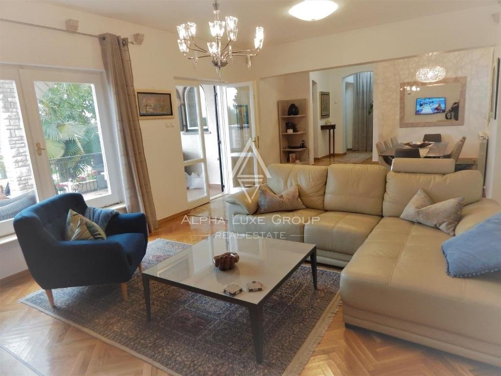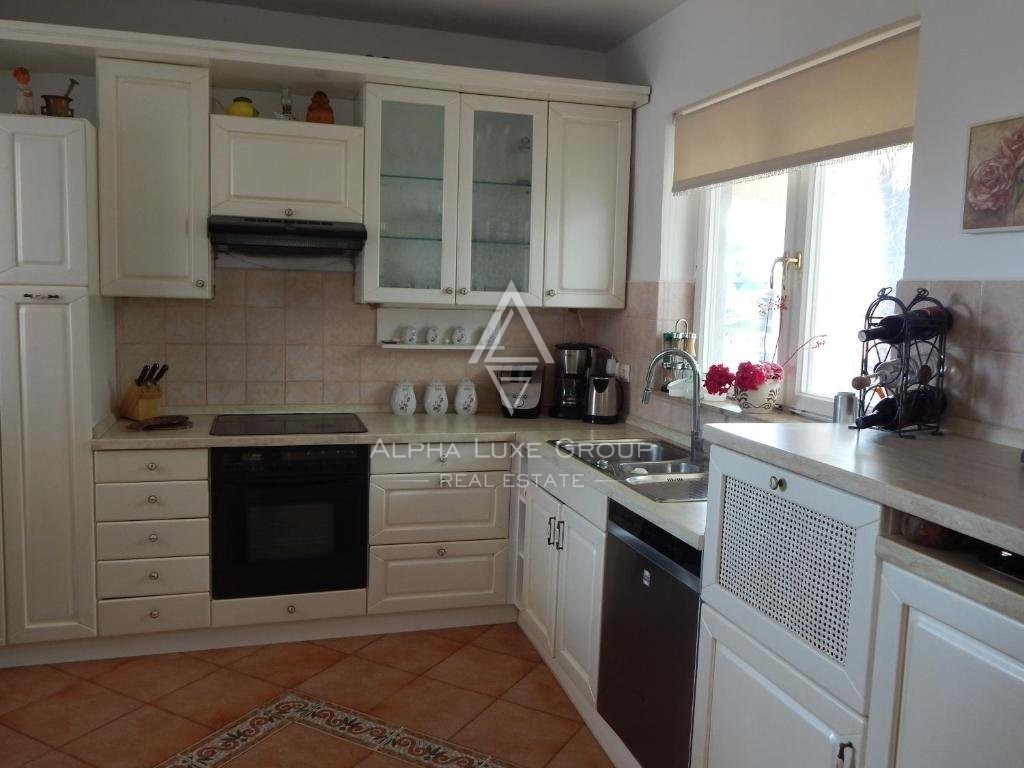Glavna kuća s dva stana u stražnjem dijelu ima 480 m2 stambenog prostora i 892 m2 površine, od kojih se jedan može koristiti kao stan za goste, a stan za sobarice, to je ono što ćete dobiti. U domu se nalazi osam spavaćih soba i sedam kupaonica. Bazen je površine 28 m2, a tu je i velika terasa popločana keramičkim pločicama koja okružuje okoliš. Hrastov parket, mramor, talijanske pločice, porfido, istarski kamen neke su od podnih obloga koje se prostiru po cijelom domu i oko njega.