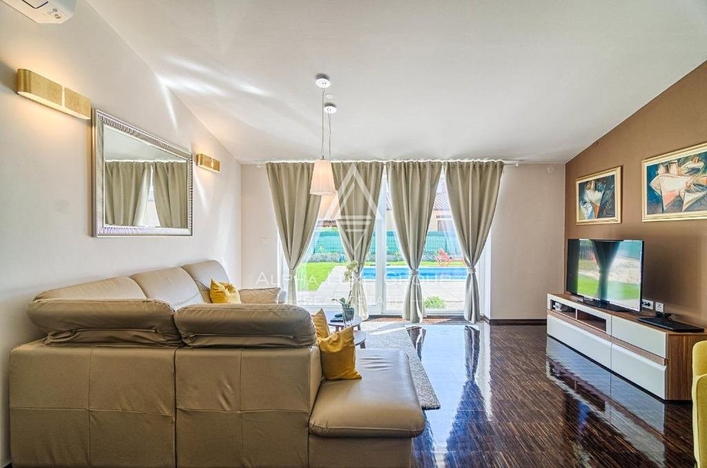 Vila je smještena na velikom vrtu od 1570m2 koji nudi brojne mogućnosti budućim vlasnicima, uključujući navodnjavanje iz vlastitog bunara i potpunu ogradu za privatnost. Također je uključen prostor za parkiranje za četiri automobila. Istaknuta značajka ovog imanja je veliki grijani bazen od 36m2, dopunjen natkrivenom ljetnom kuhinjom s toaletom, idealan za uživanje u ljetnim danima.